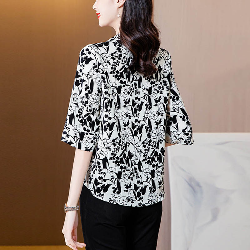 Шелковая модная летняя одежда, рубашка, цветочный принт, коллекция 2023, свободный крой