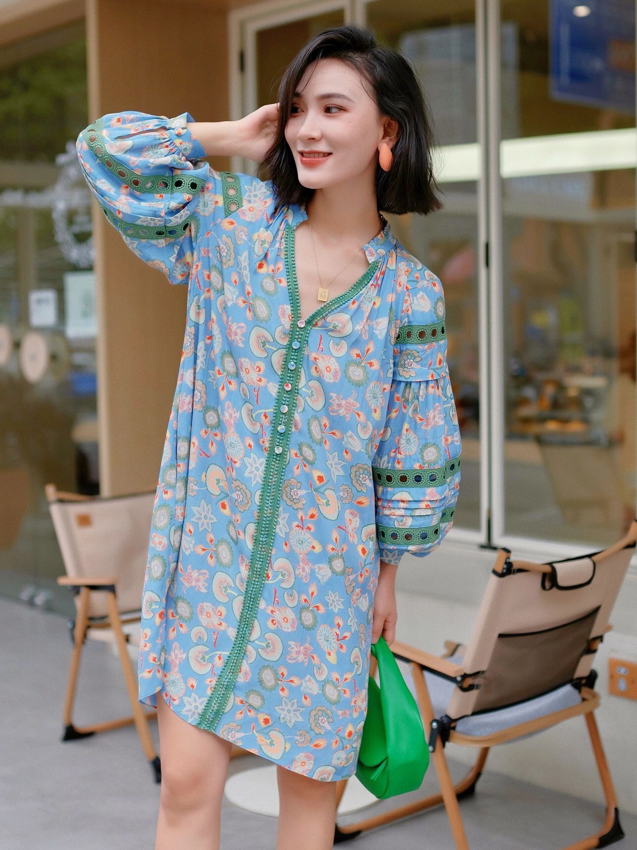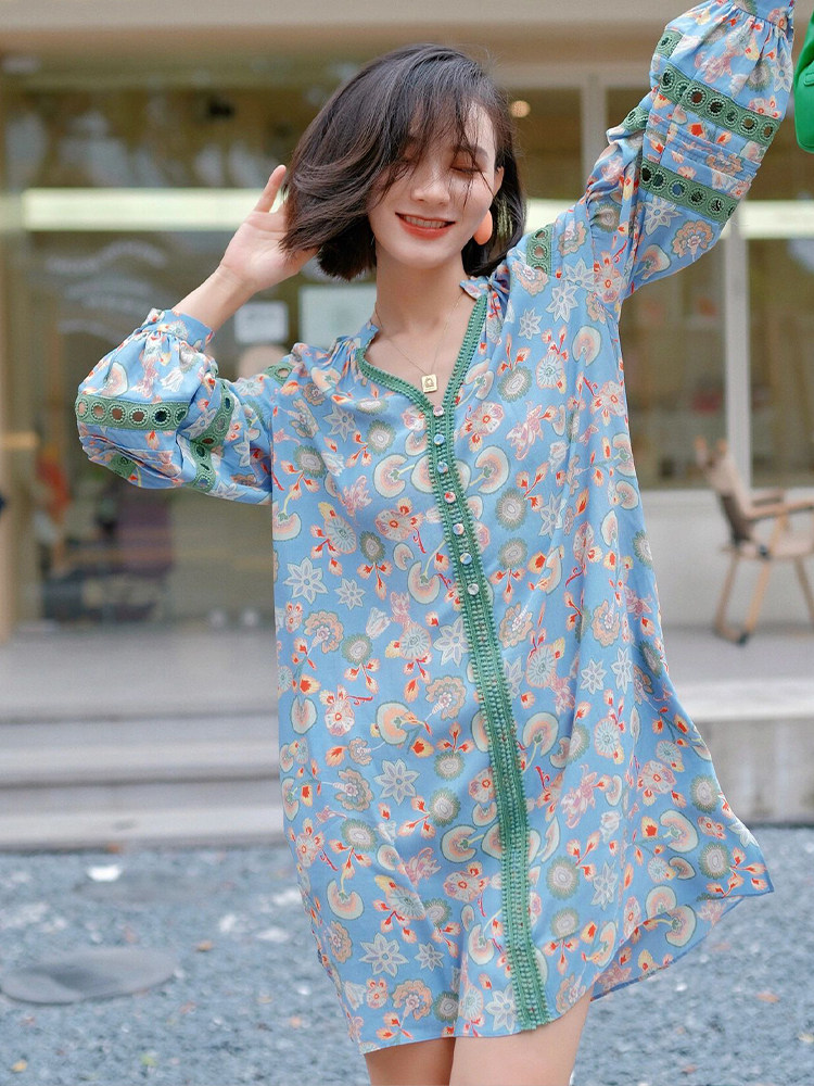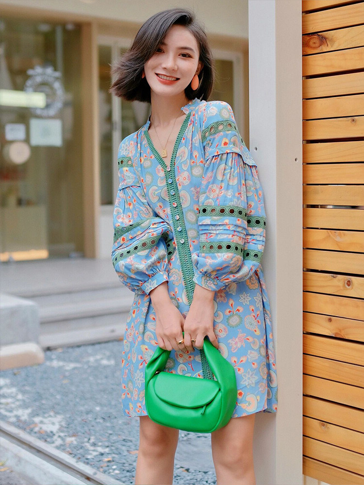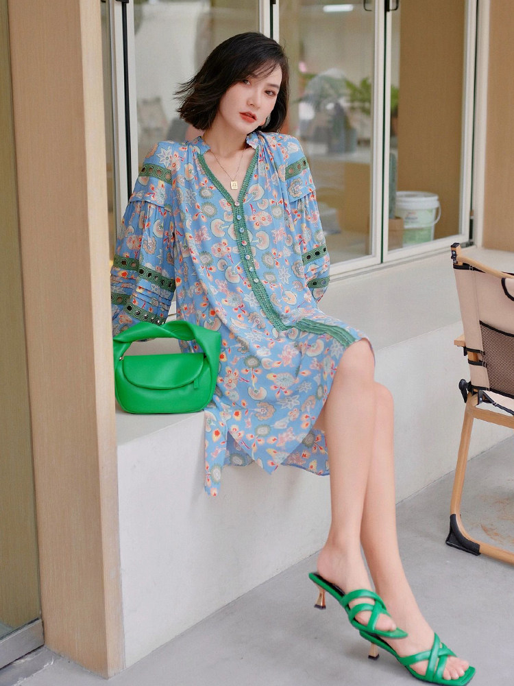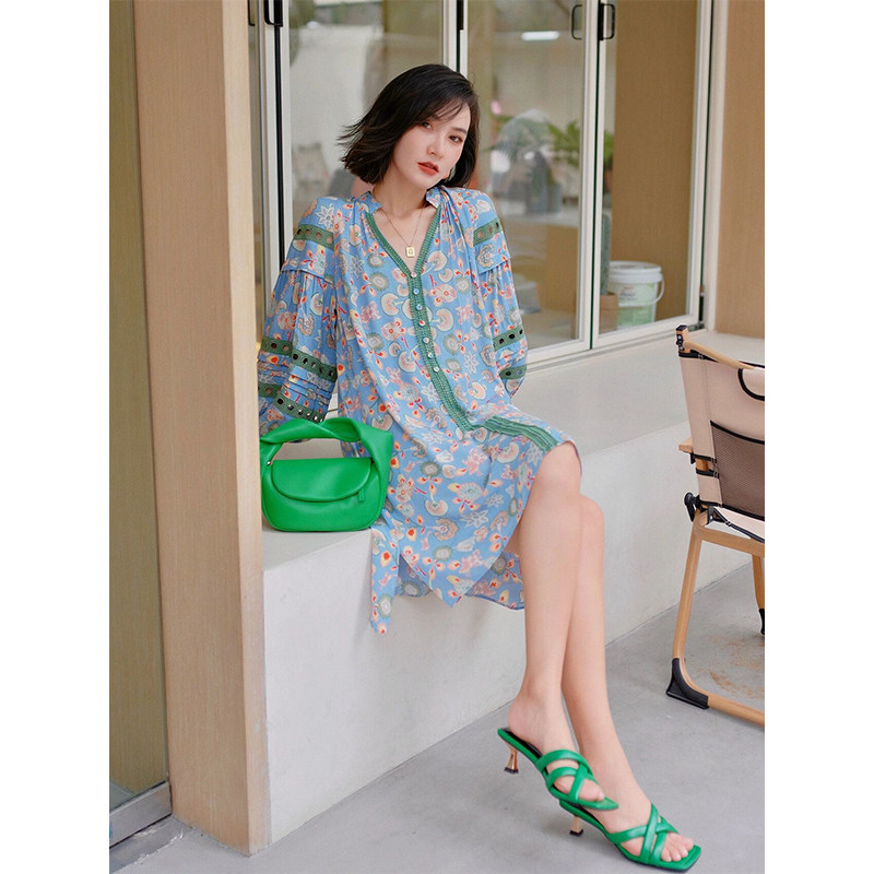 Платье для отдыха, изысканный стиль, рукава фонарики, в цветочек