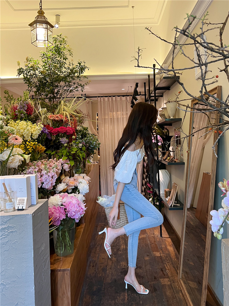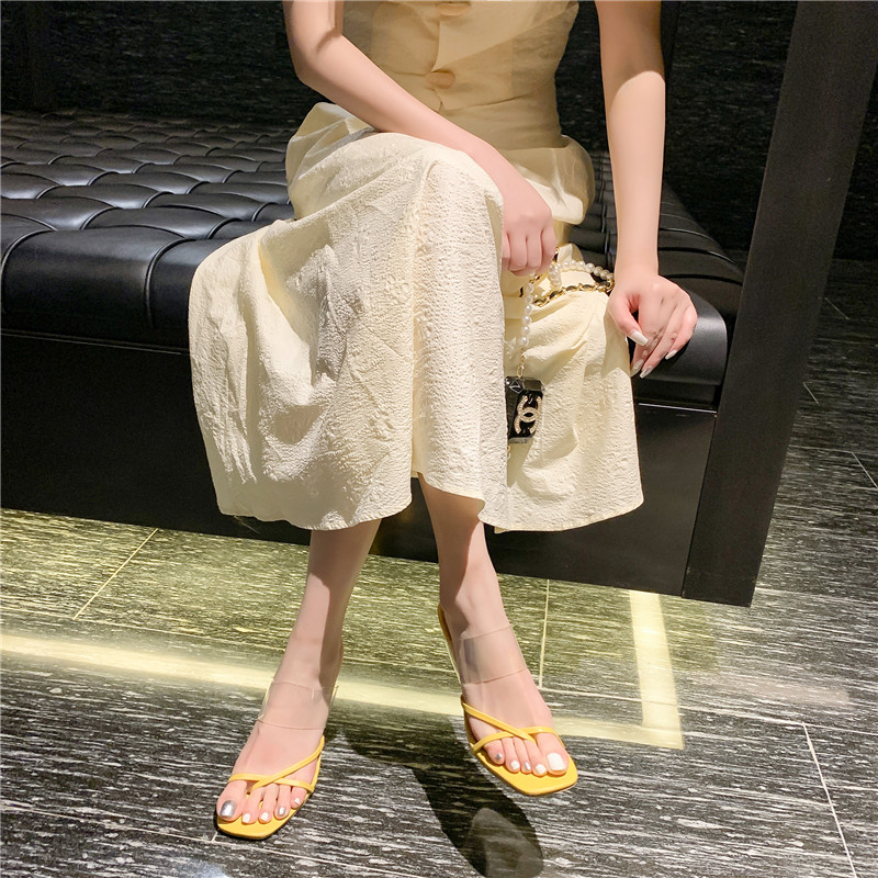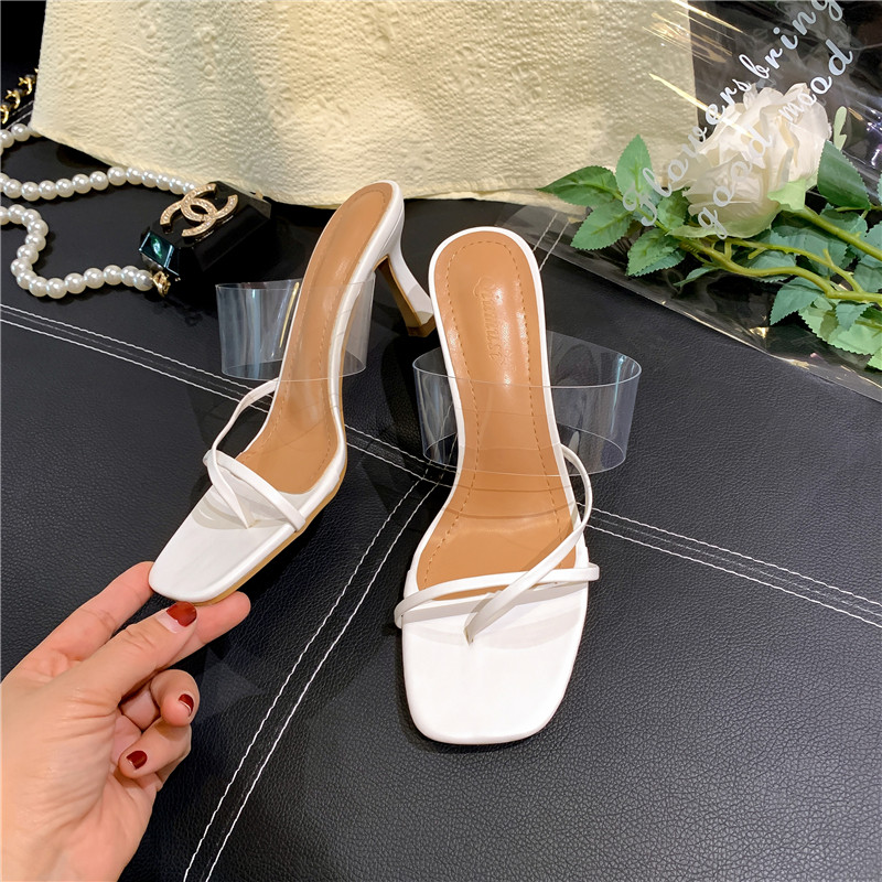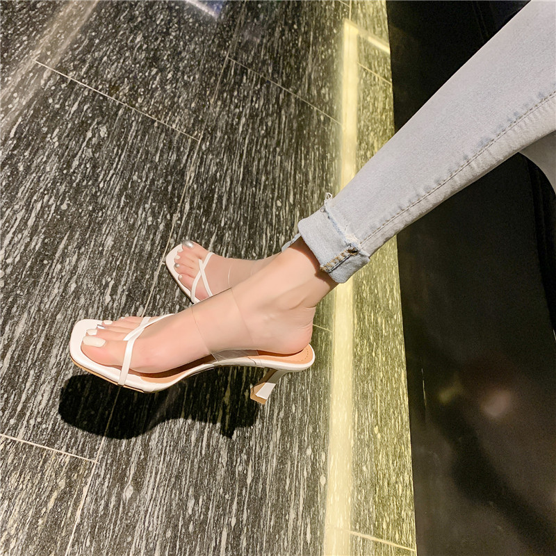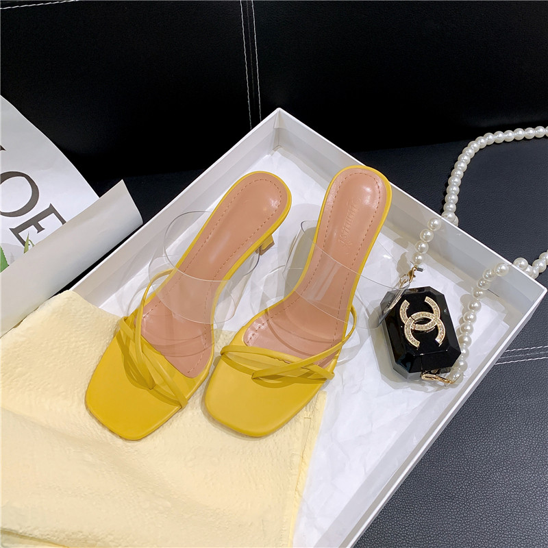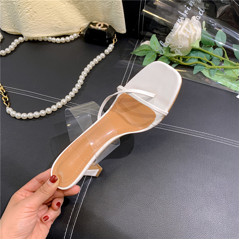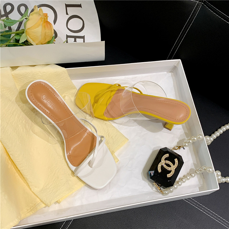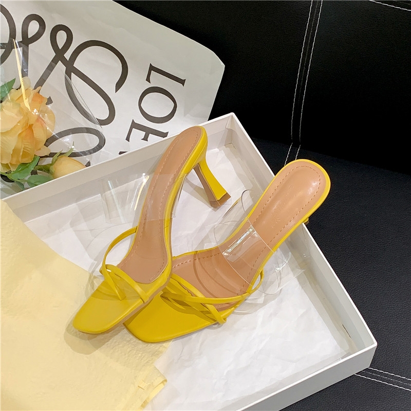 Пустые шлепанцы с квадратным носком сзади для женщин. 2025 новые модные прозрачные босоножки на высоком каблуке с одним словом в сказочном стиле.