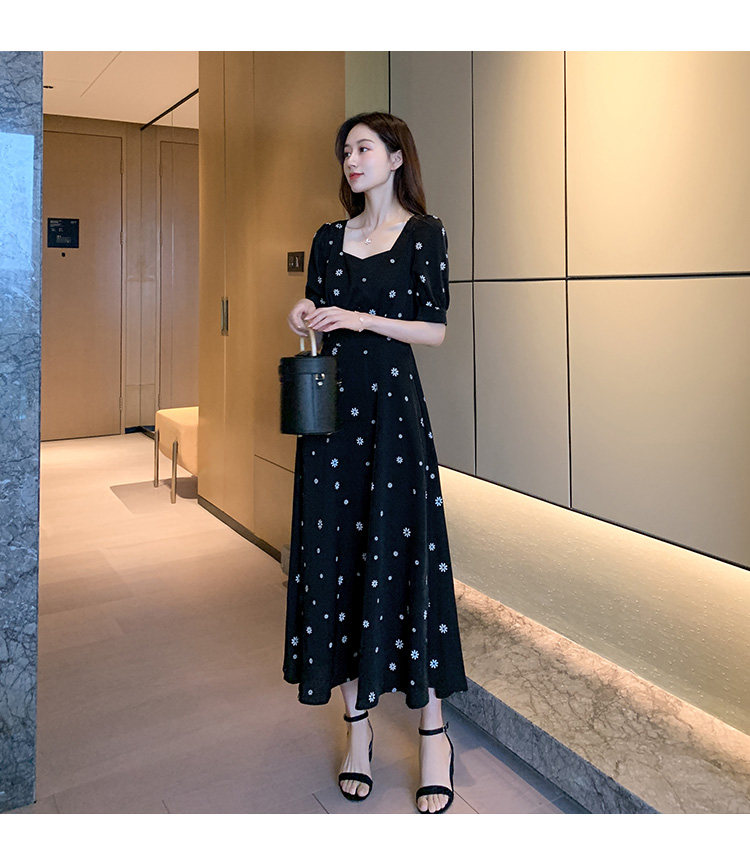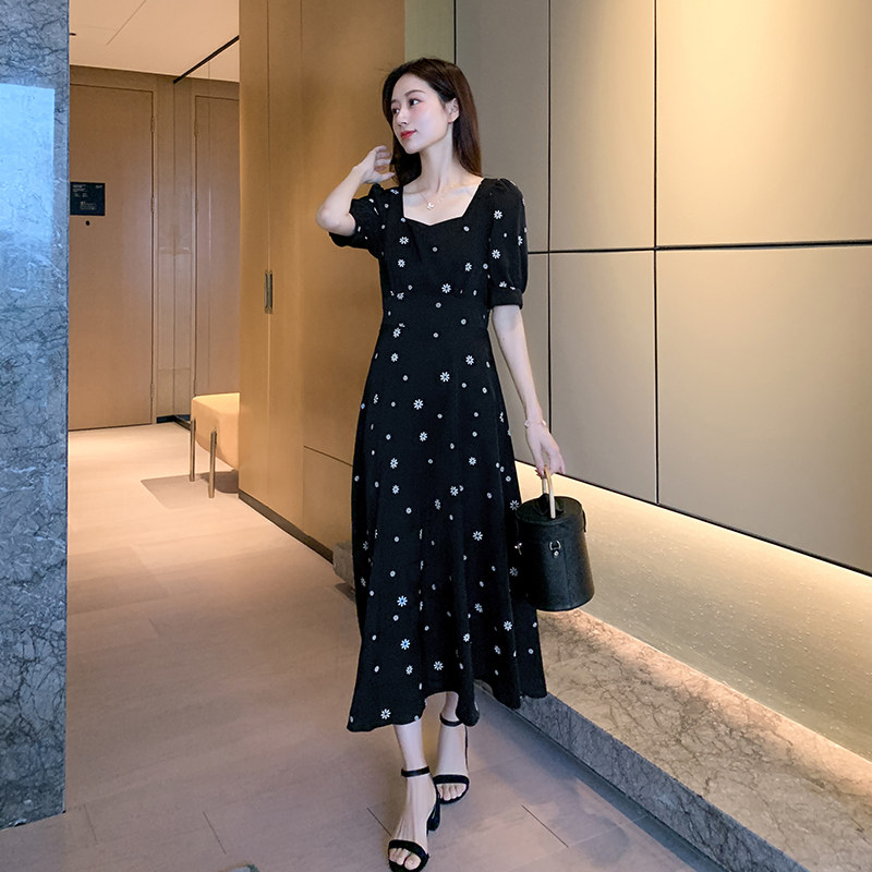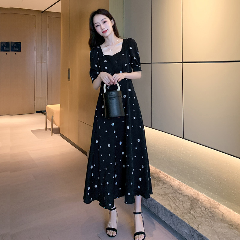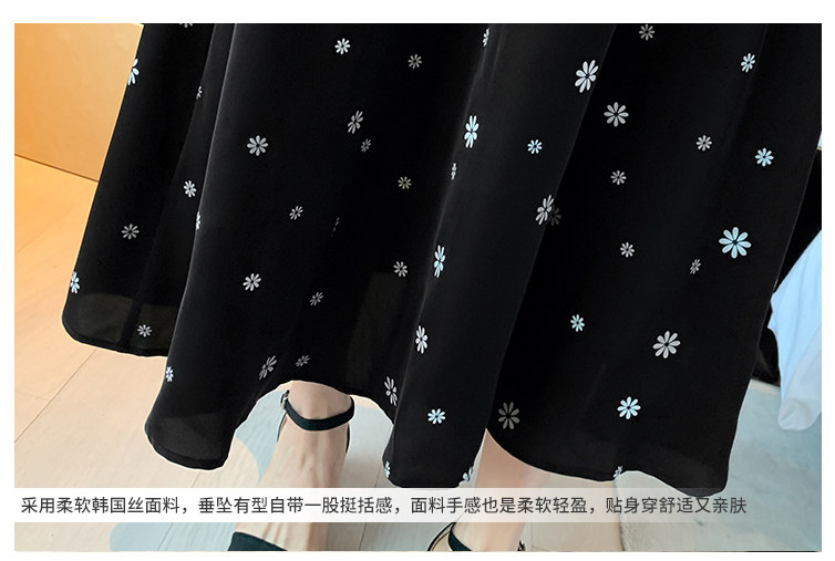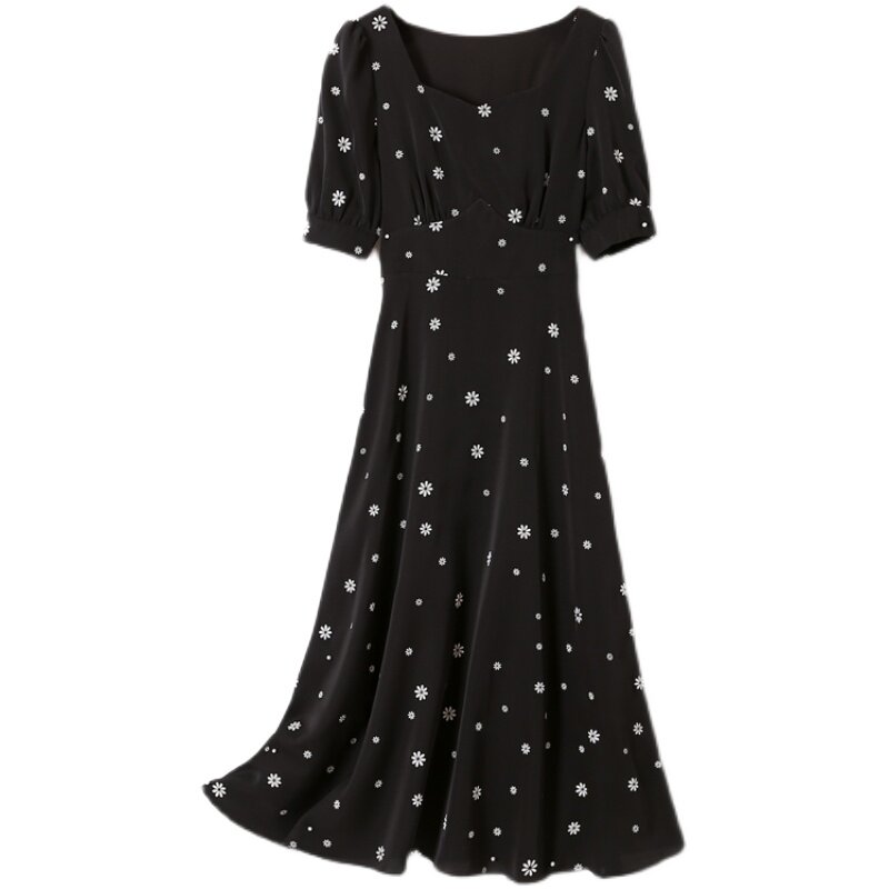 Летняя юбка, черное платье, большой размер, премиум класс, подходит для полных девушек, французский стиль, в цветочек