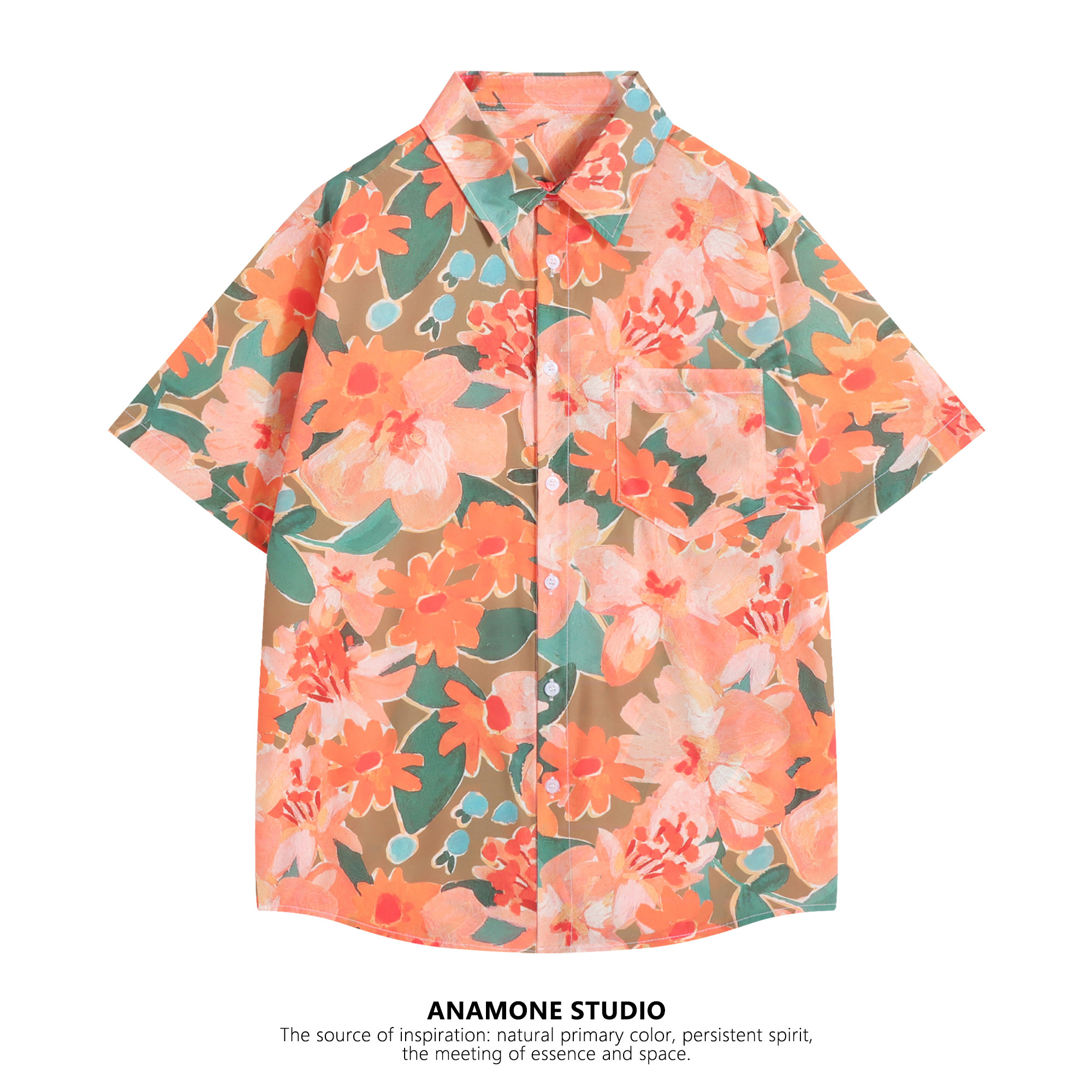 Оранжевая ретро японская рубашка для влюбленных, короткий рукав, свободный крой