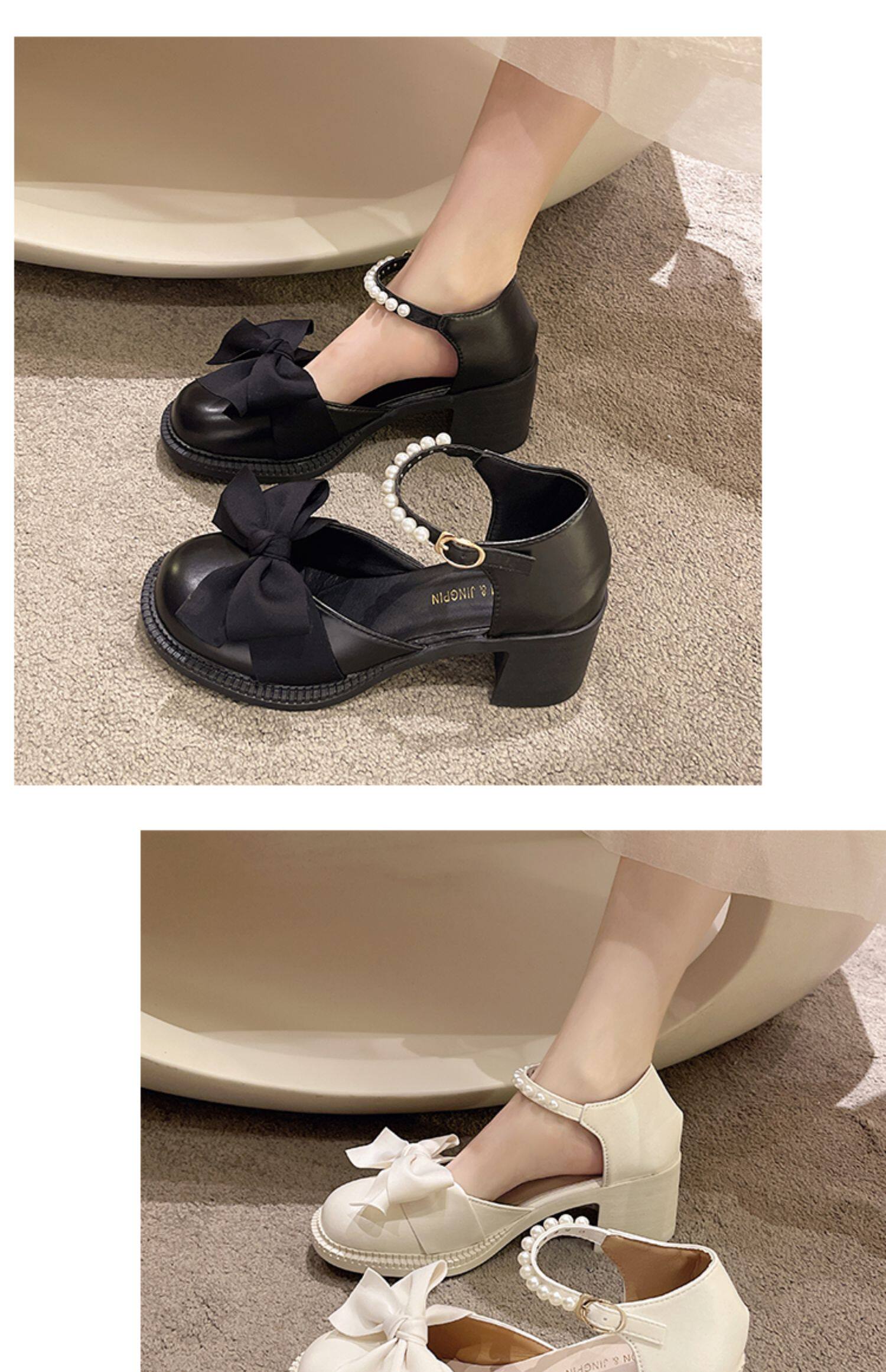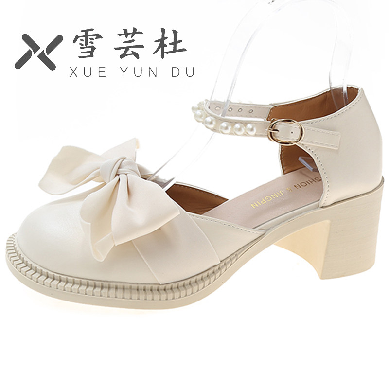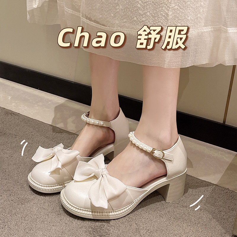 Летняя обувь на платформе с бантиком на высоком каблуке для кожаной обуви, коллекция 2022, французский стиль