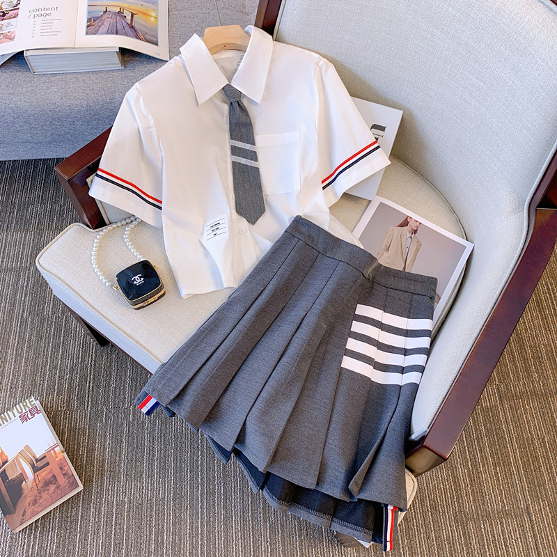 Настройка GD ~ Скажите немного больше любовных слов!Серые нерегулярные четыре бара, высокая талия, наполовину рубашка Qun, два -набор.