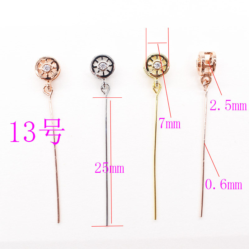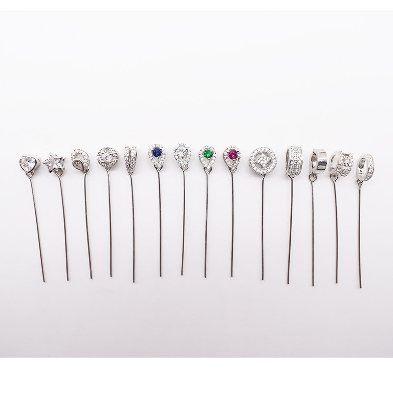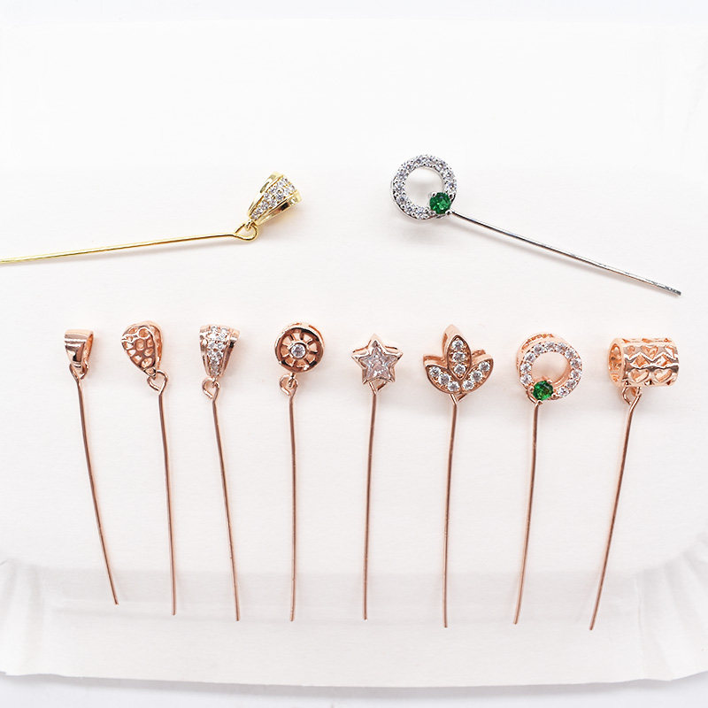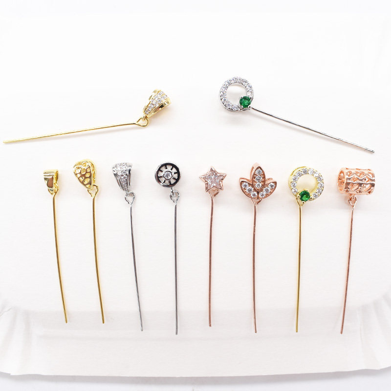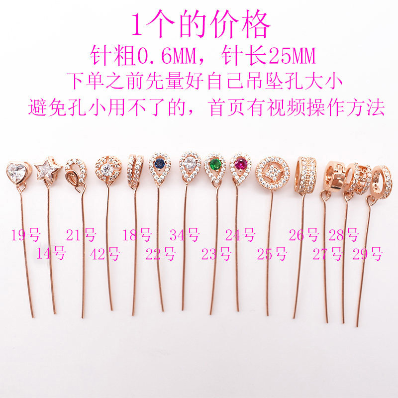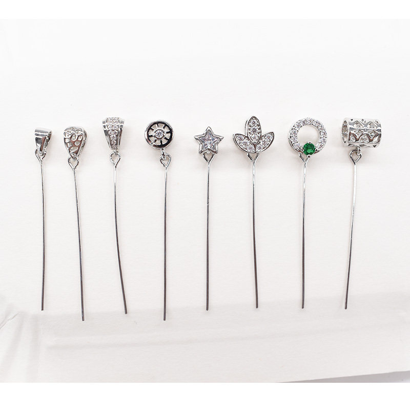 925 Половина серебряных тонких иголок Претает диагональное отверстие для головы влево и правое отверстия Подвесная пряжка Di