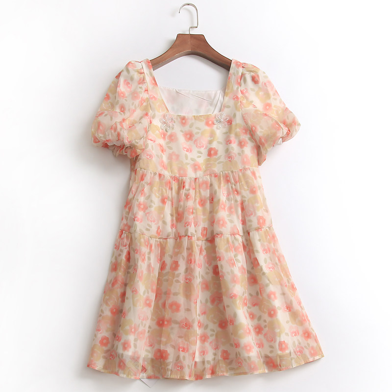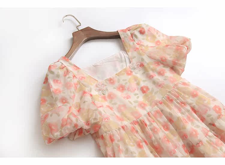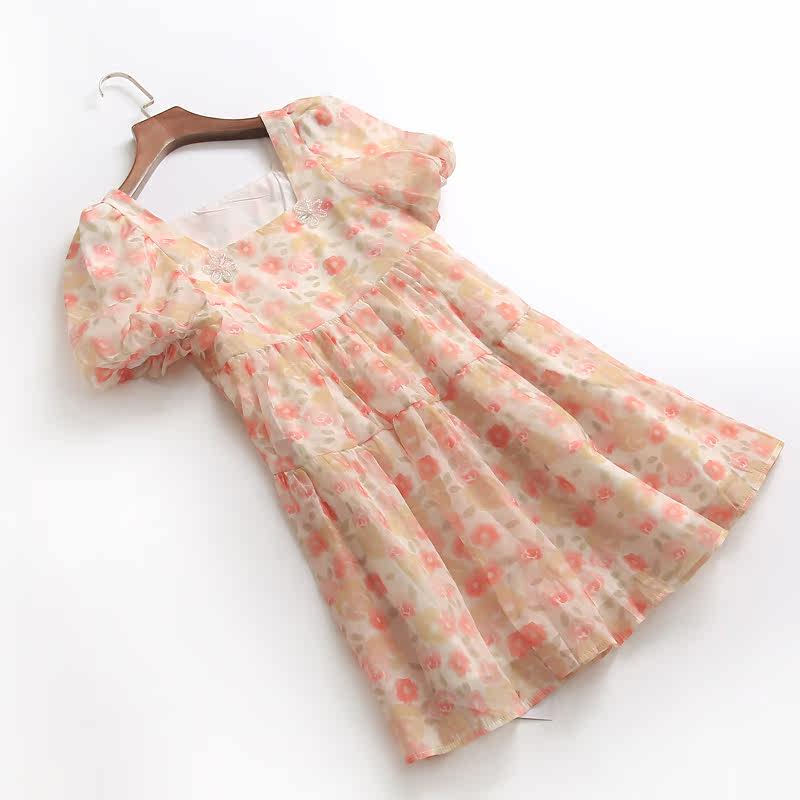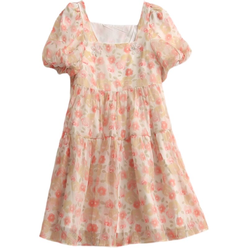 Приталенная летняя юбка, платье, квадратный вырез, высокая талия, короткий рукав