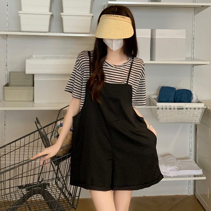 Летние подтяжки, шорты, футболка, комплект, большой размер, в западном стиле, по фигуре