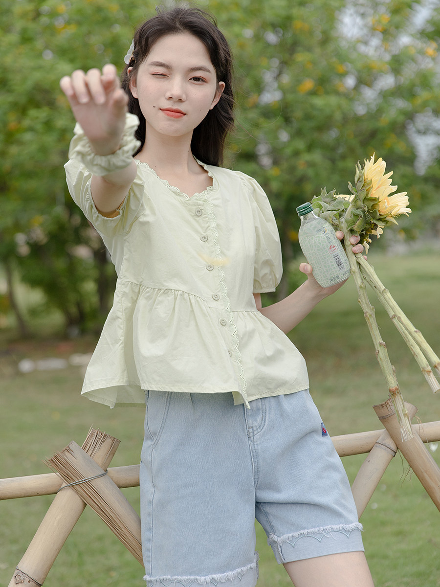 Летний комплект, рубашка, летняя одежда, джинсовая юбка, милые шорты, подходит для подростков