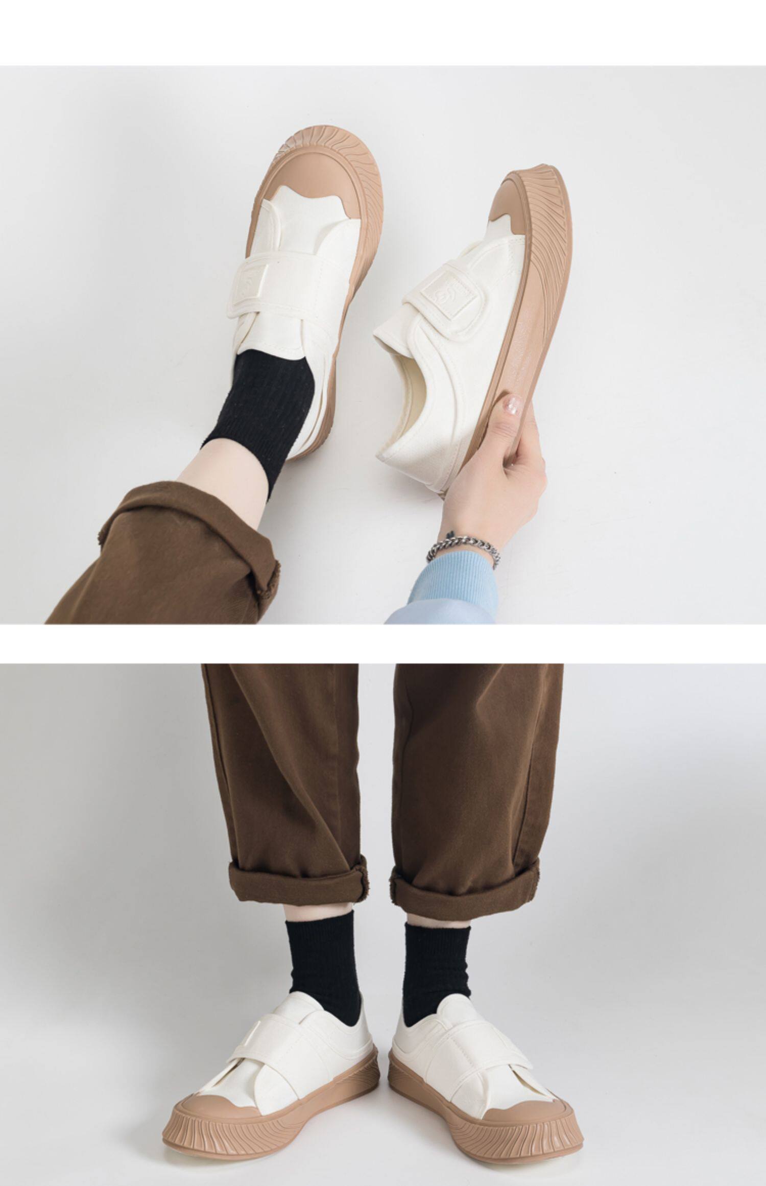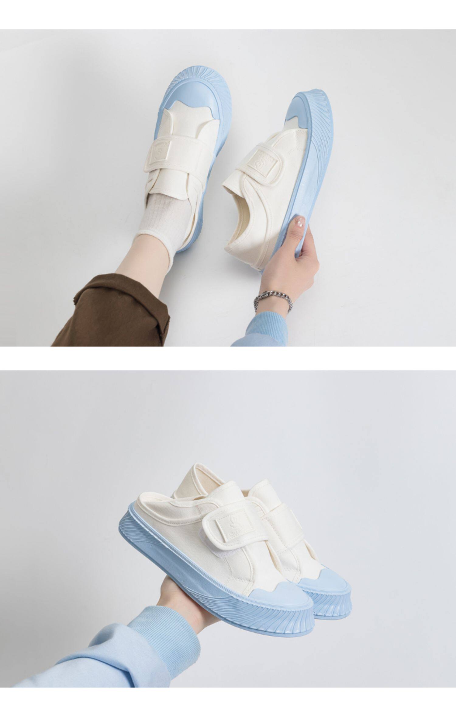 Комфортная универсальная тканевая белая обувь на липучке, мягкая подошва, 2024 года