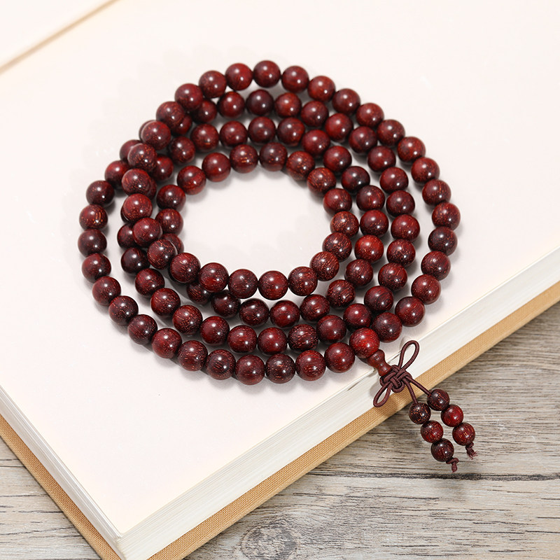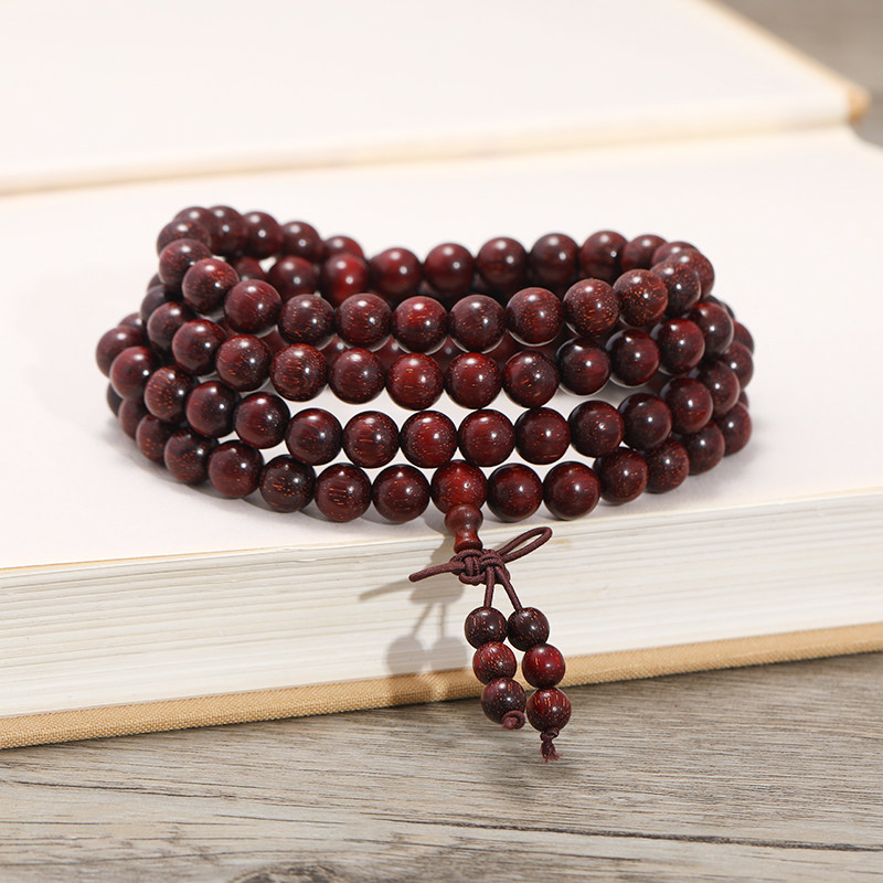 Натуральный браслет из розового дерева из красного сандала из сандалового дерева, этнические четки из круглых бусин из грецкого ореха подходит для мужчин и женщин, 108 бусин, этнический стиль