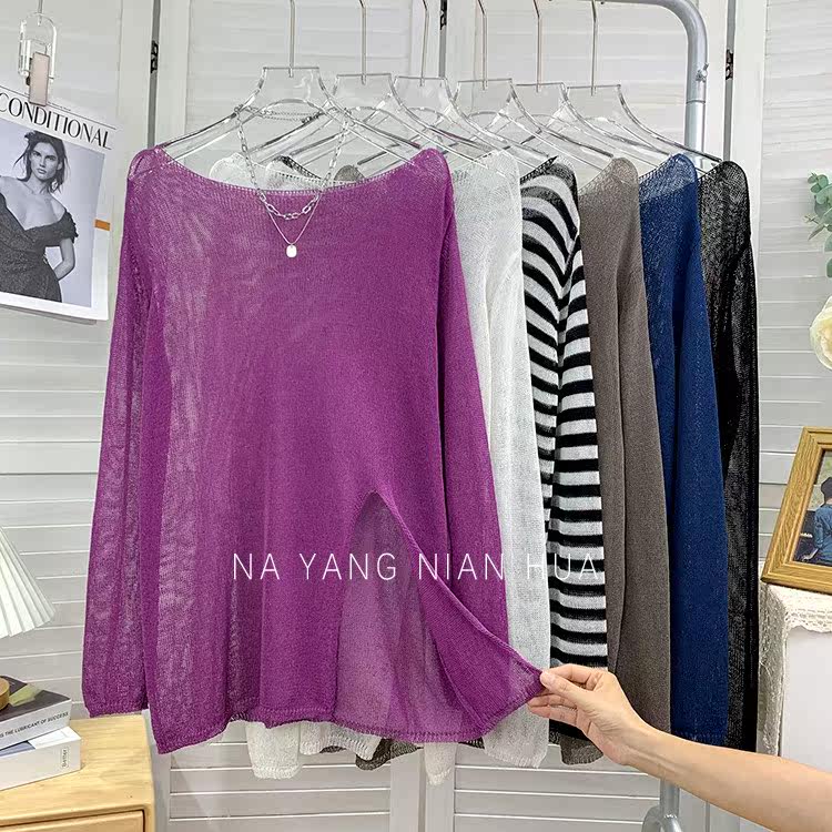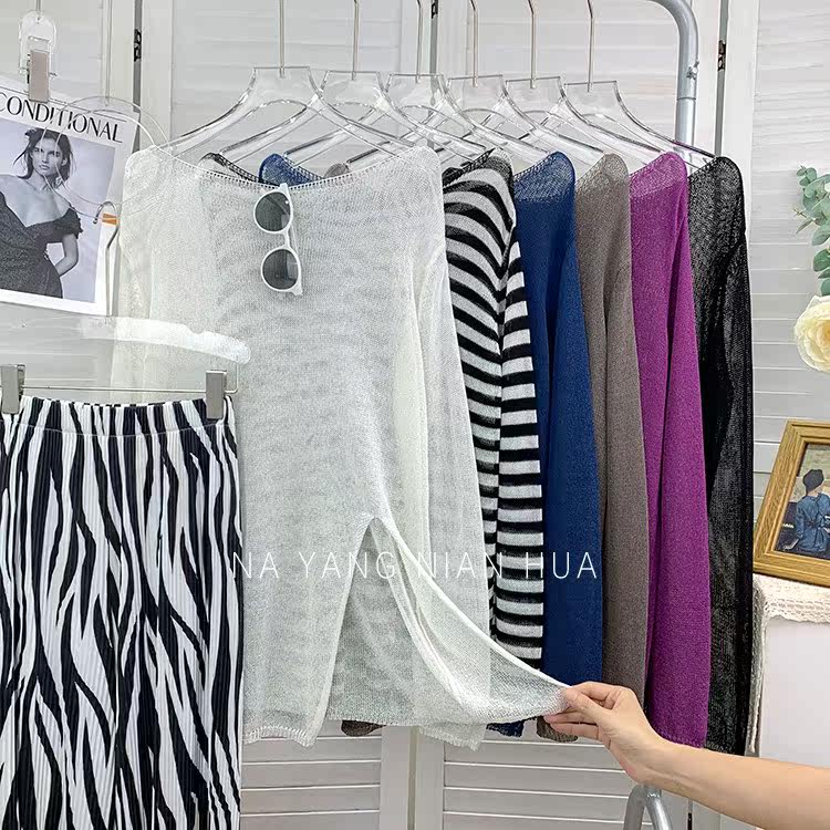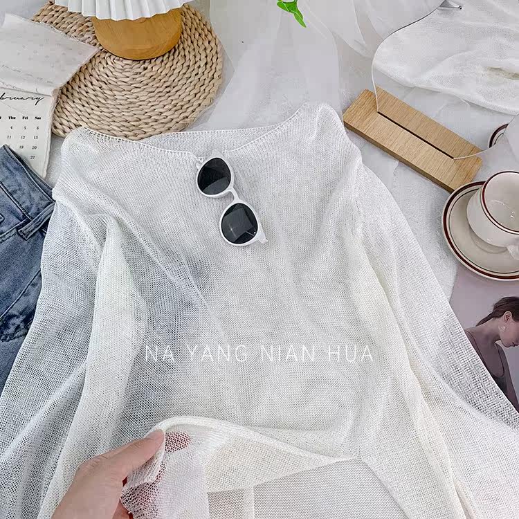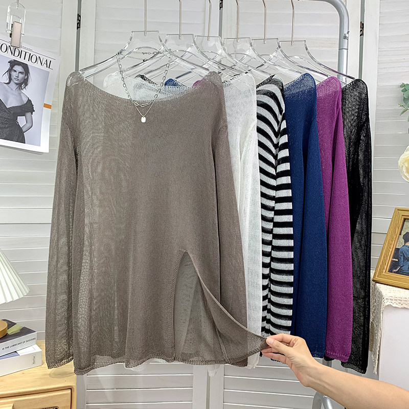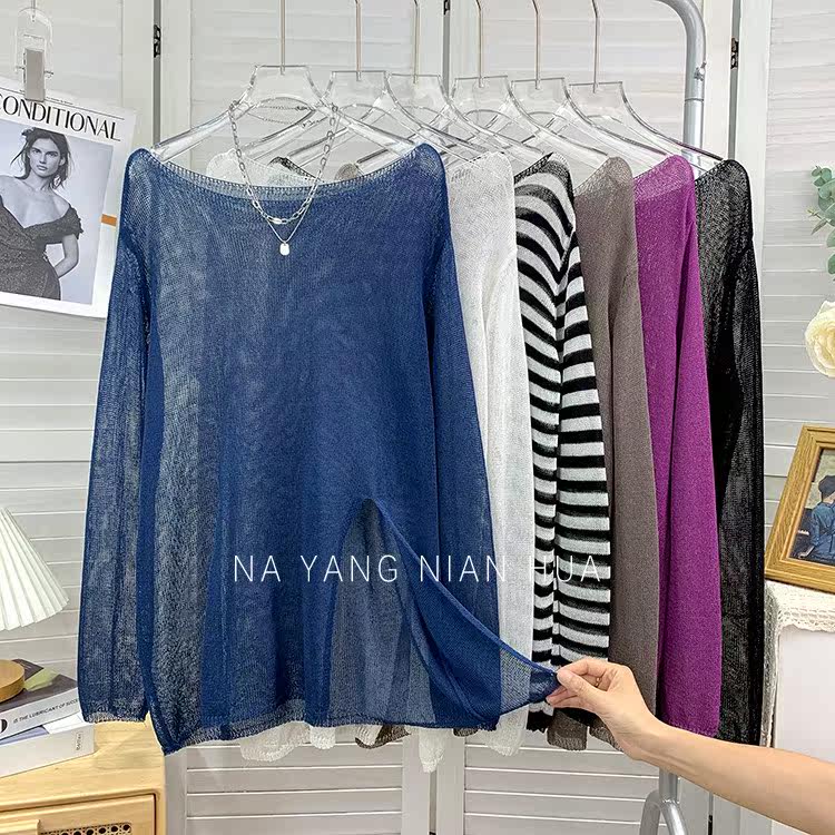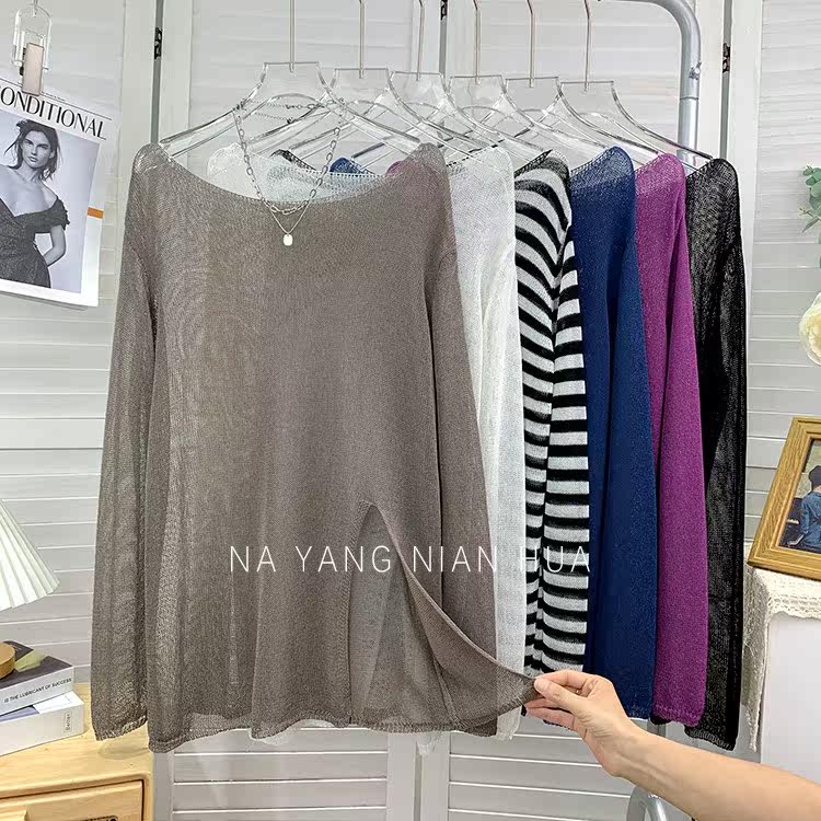 Шелковый трикотажный лонгслив, тонкий комплект, защита от солнца, оверсайз