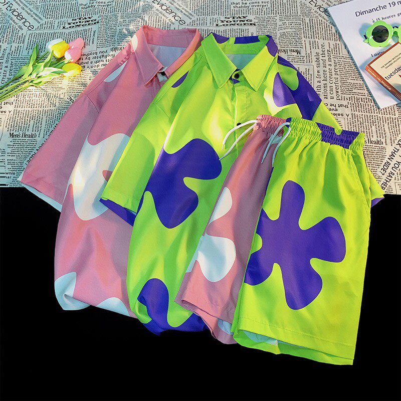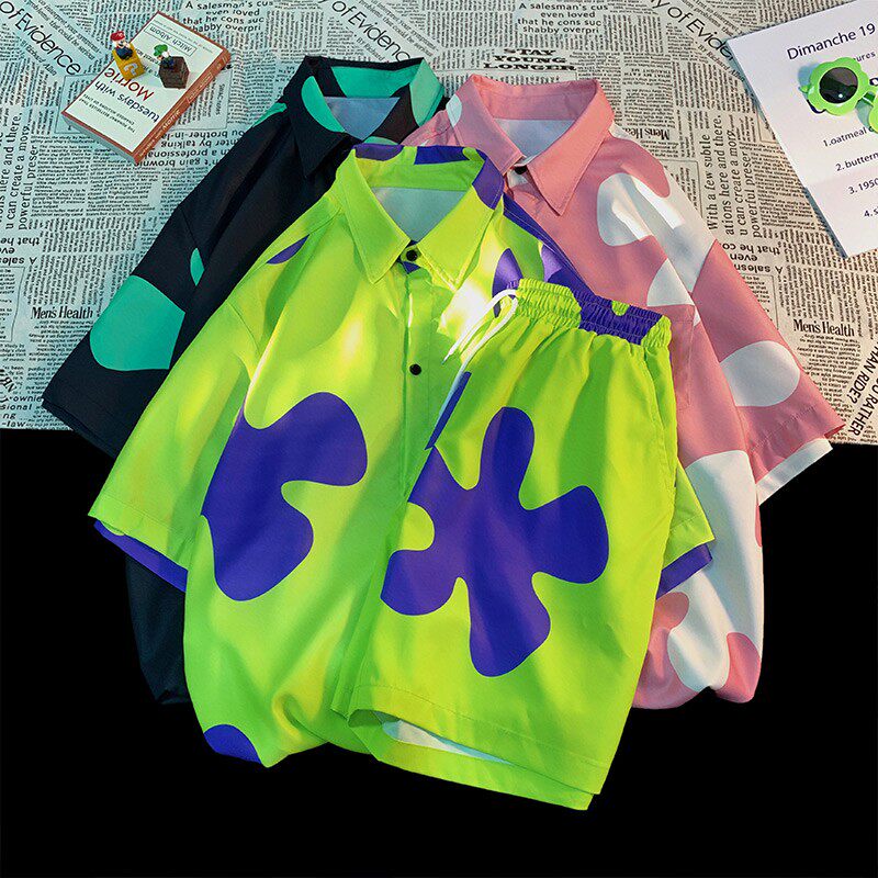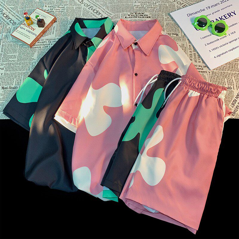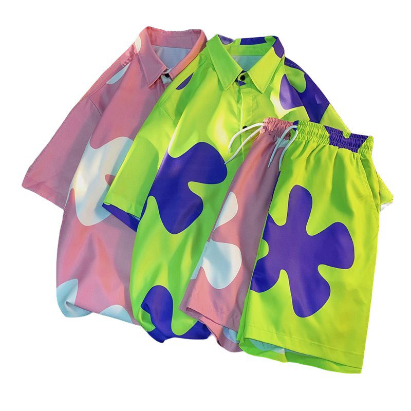 Комплект подходит для мужчин и женщин, шелковая пляжная рубашка, парная одежда, для влюбленных