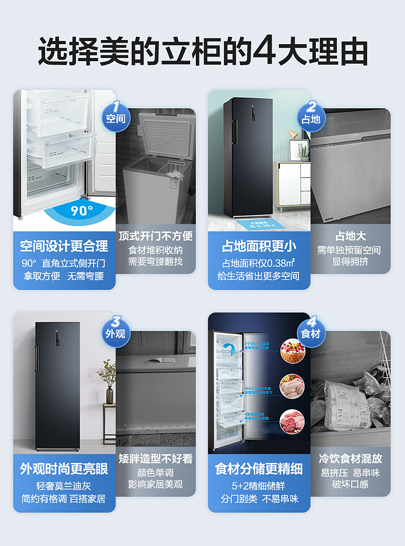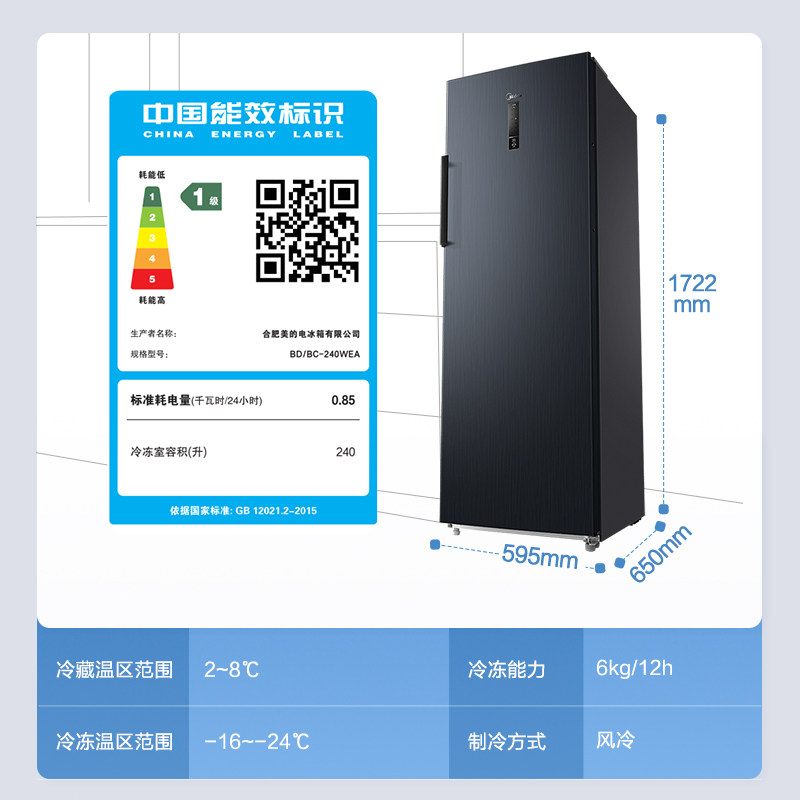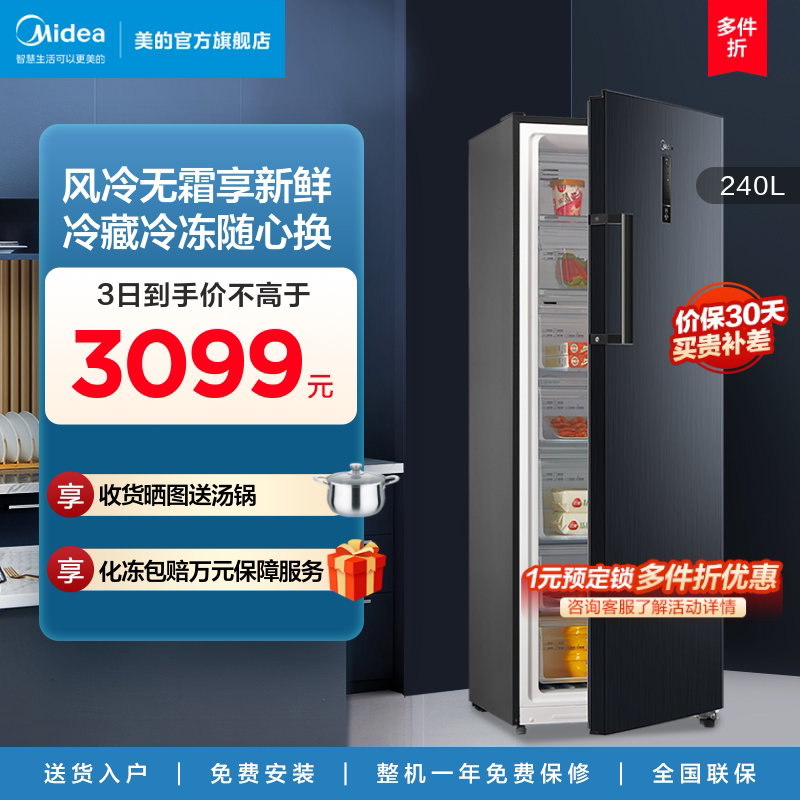 Домашний морозильник Midea 240L, холодный холодный бесплатный морозильный морозильный молочный молоко для холодильника холодильник холодильник холодильник
