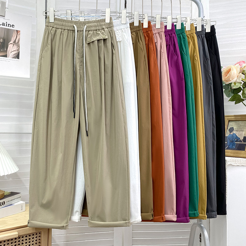 Ретро шелковые быстросохнущие штаны, фонарь, свободный прямой крой