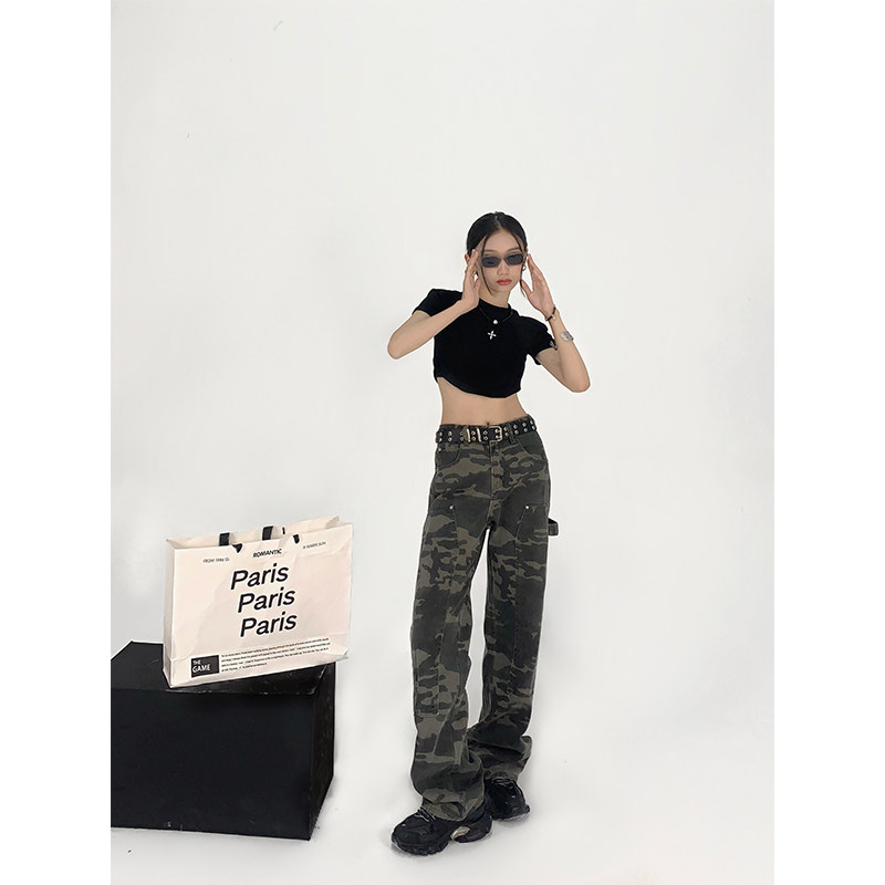 Ретро камуфляжные дизайнерские джинсы в стиле хип-хоп, летние штаны, в американском стиле, тренд сезона
