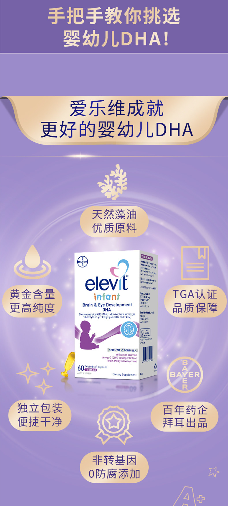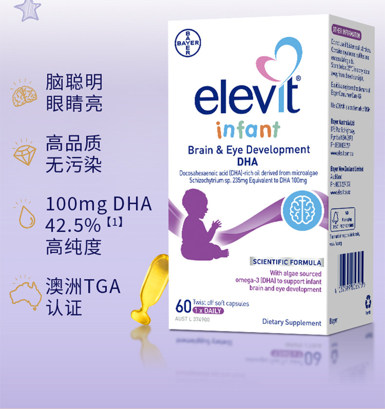 Австралийский подъемный маленький поднятый младенец DHA The Wawed Oil New Birthing Futrition Baby Baby 60 Капсулы*2