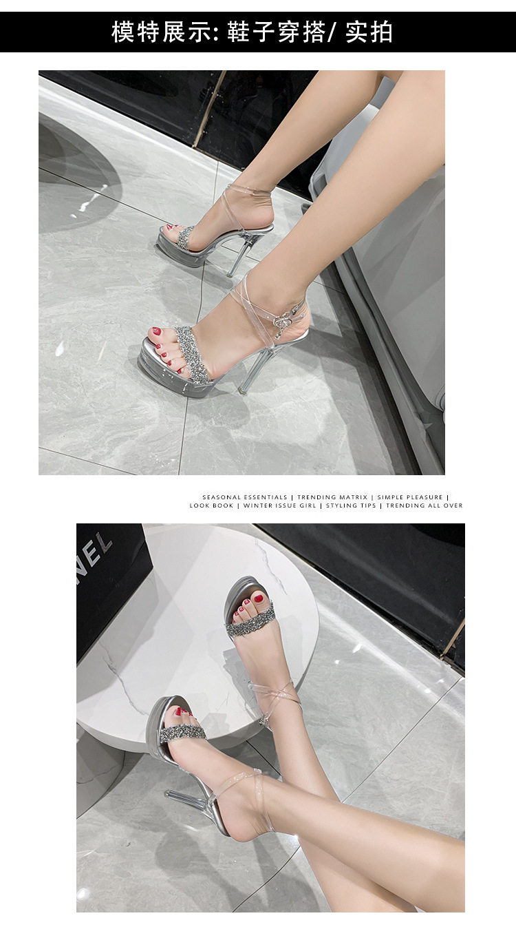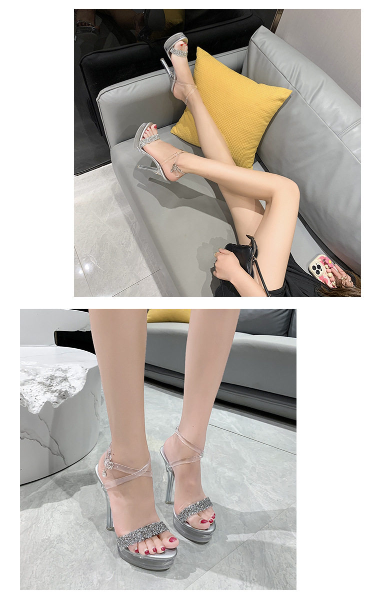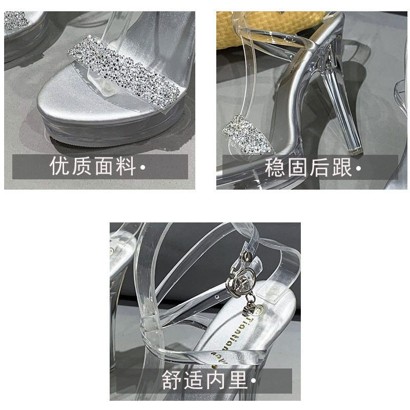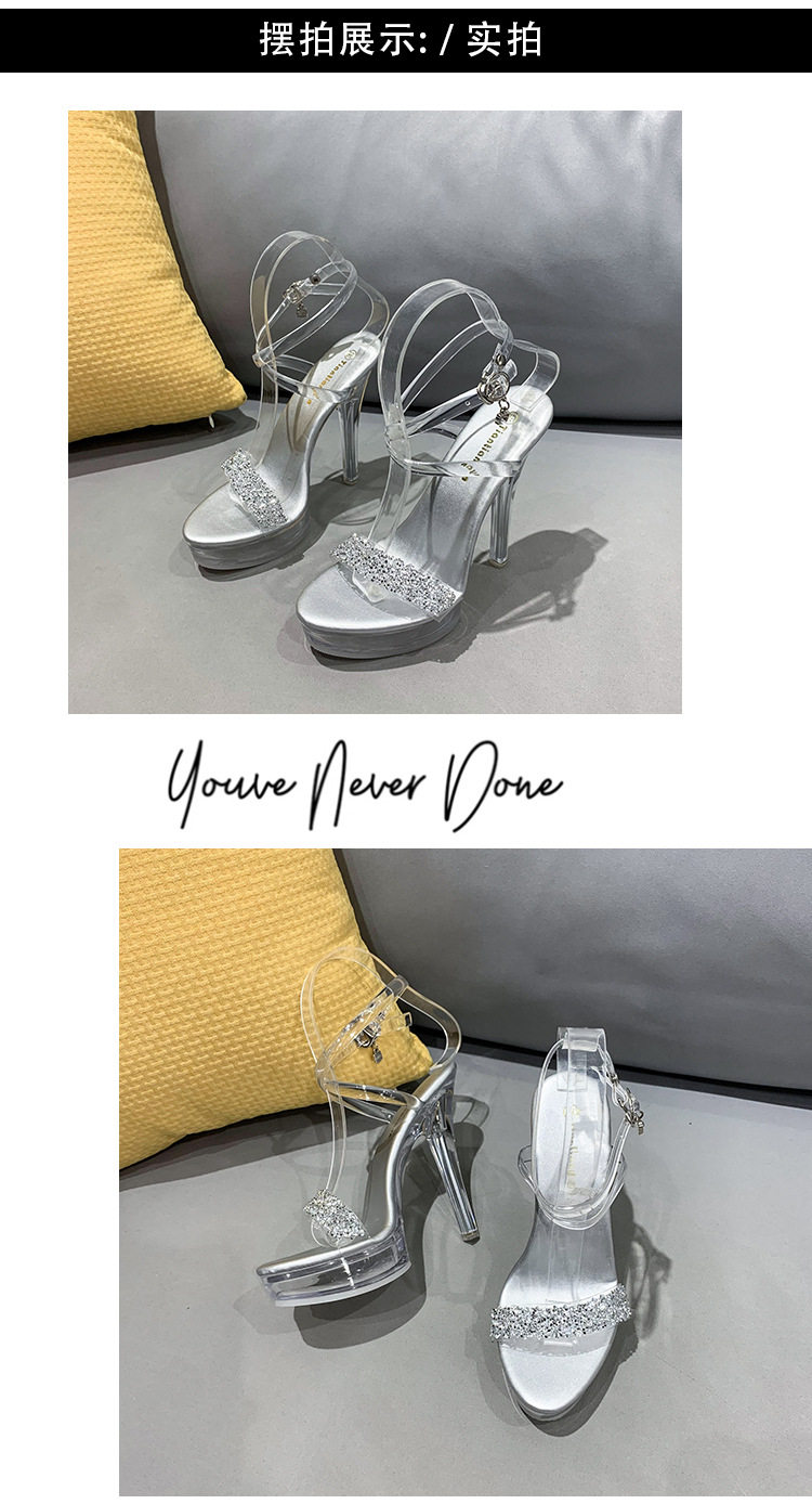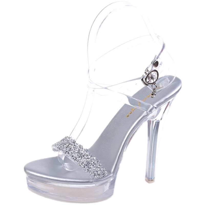 Сандалии на тонком и очень высоком каблуке 13 см, сексуальная водонепроницаемая обувь на платформе для ночного клуба, прозрачные хрустальные блестки и бриллианты, женская обувь для свадебного банкета и подружки невесты