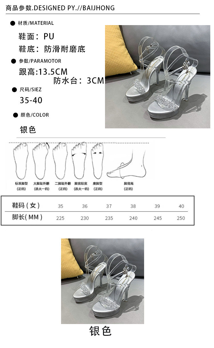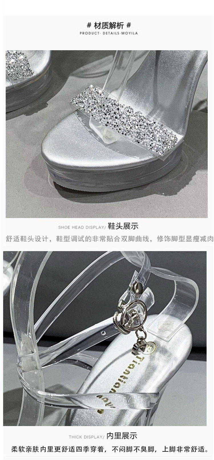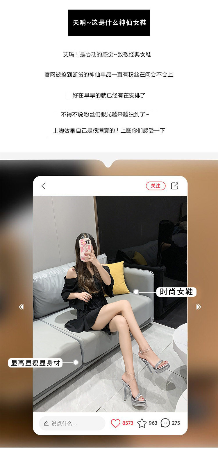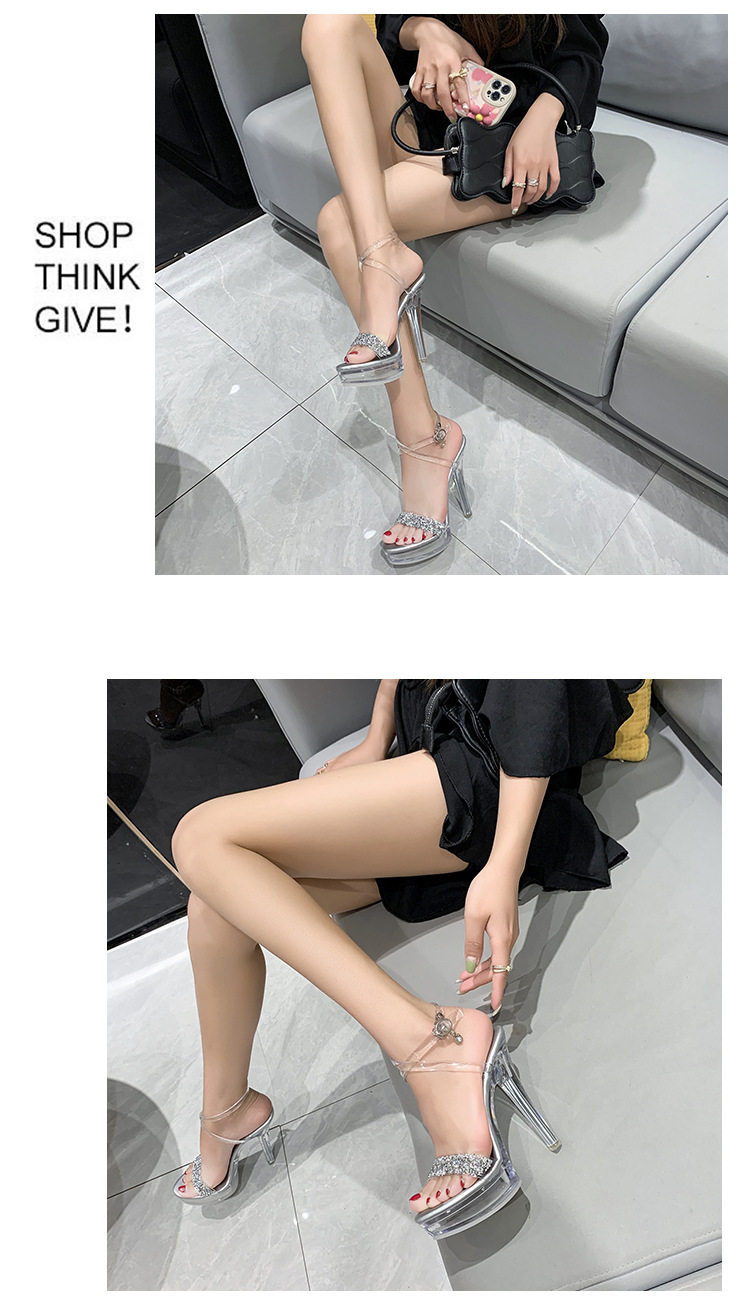 Сандалии на тонком и очень высоком каблуке 13 см, сексуальная водонепроницаемая обувь на платформе для ночного клуба, прозрачные хрустальные блестки и бриллианты, женская обувь для свадебного банкета и подружки невесты