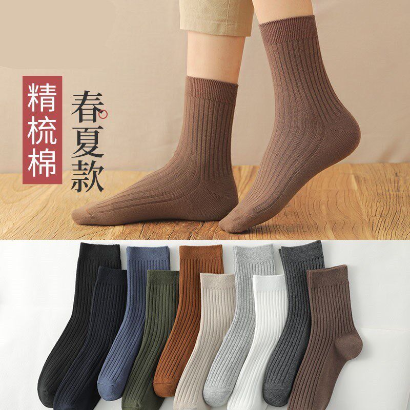 Мужские носки, демисезонные хлопковые черные гольфы, средней длины, впитывают пот и запах, простой и элегантный дизайн