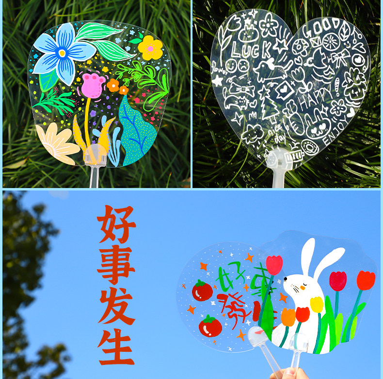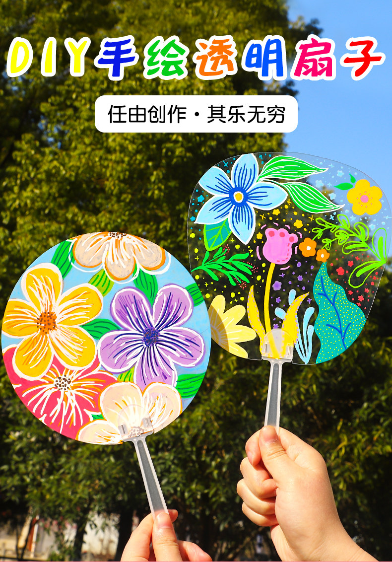 Пластиковый детский художественный круглый веер для детского сада, DIY