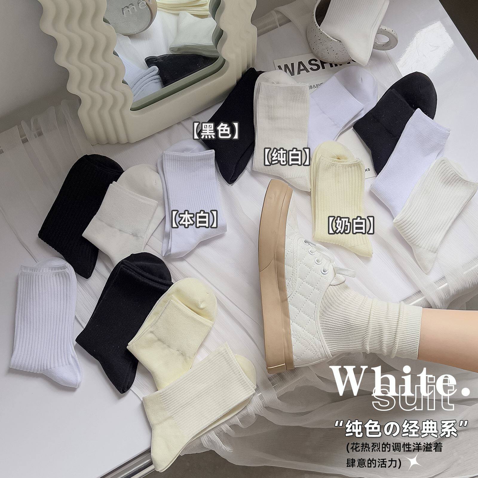 Tide, белые осенние тонкие носки, лоферы, средней длины