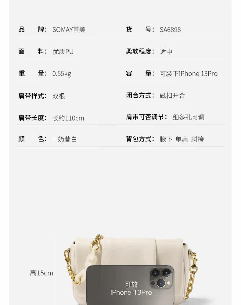 Универсальная летняя цепь, белая сумка на одно плечо