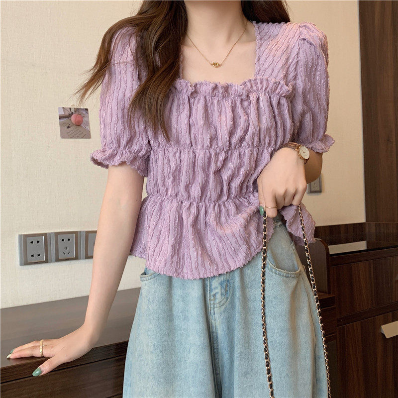 Летняя сиреневая короткая летняя одежда, рубашка, большого размера (2022), премиум класс, квадратный вырез, по фигуре