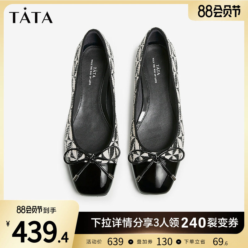 Тата его ретро -клетчатая клетчатая голова мелководья пятка в одну туфли женская плоская туфли 2022 Осень Новая 7VJ02CQ2