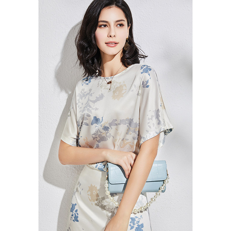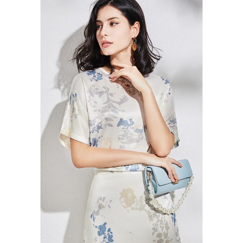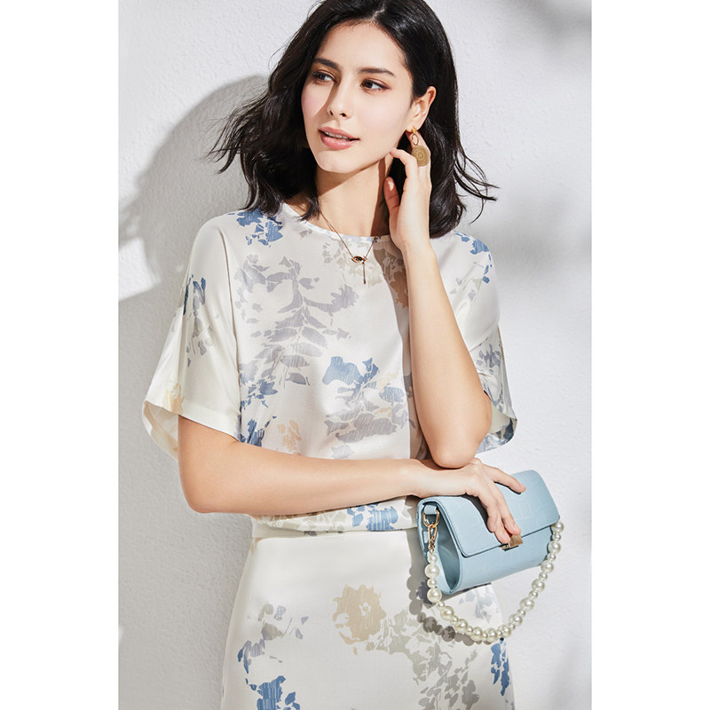 Элегантная шелковая двусторонная футболка, французский стиль, короткий рукав