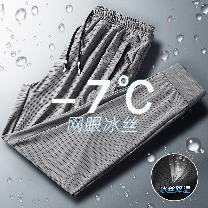 Мужские шелковые летние быстросохнущие тонкие сетчатые дышащие штаны, свободный крой