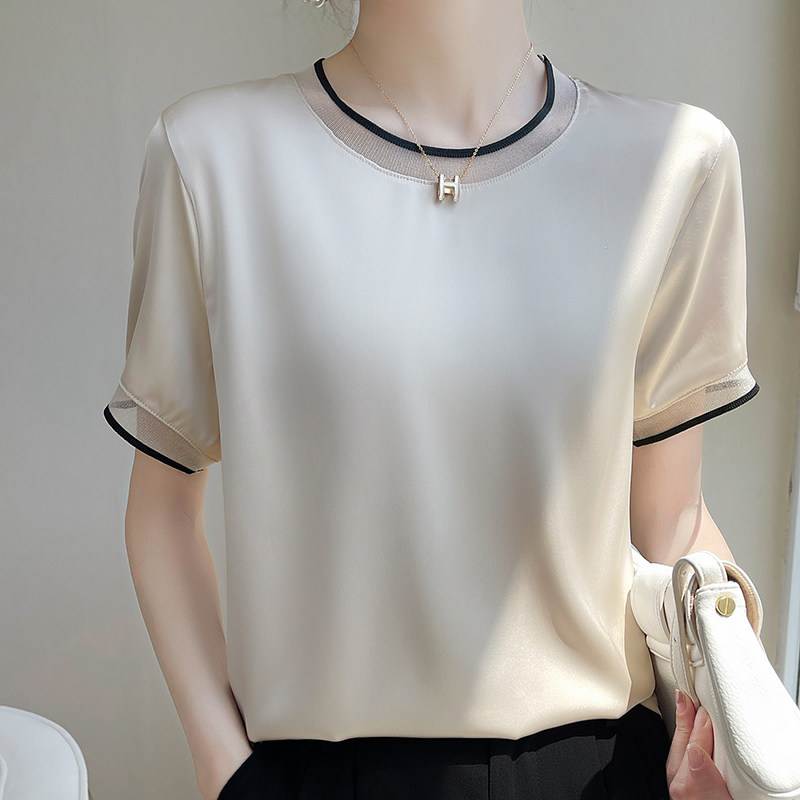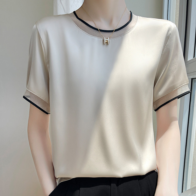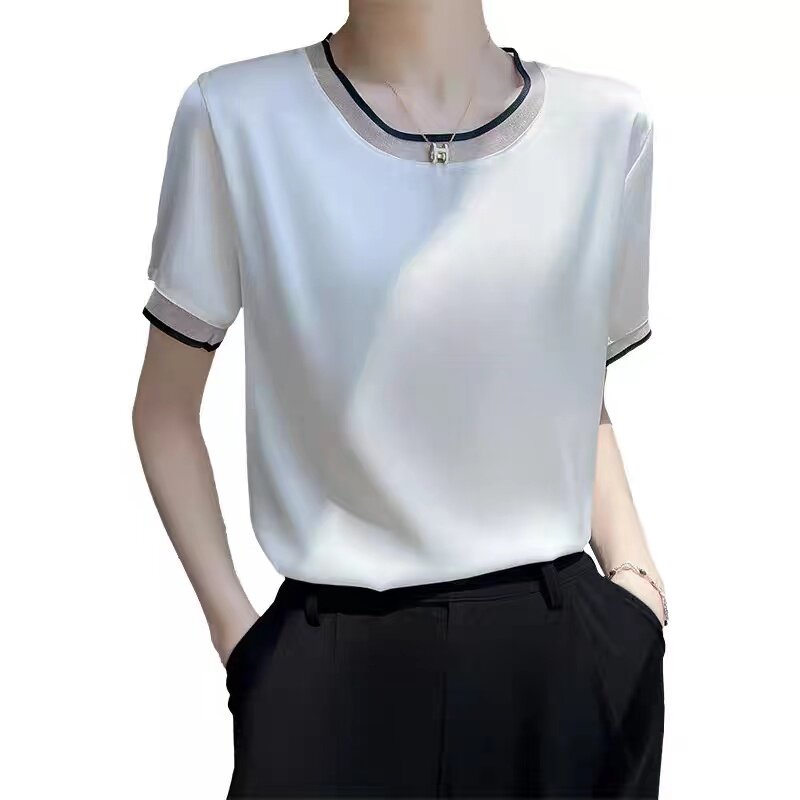 Летняя шелковая футболка с коротким рукавом с круглым воротником, свободный крой