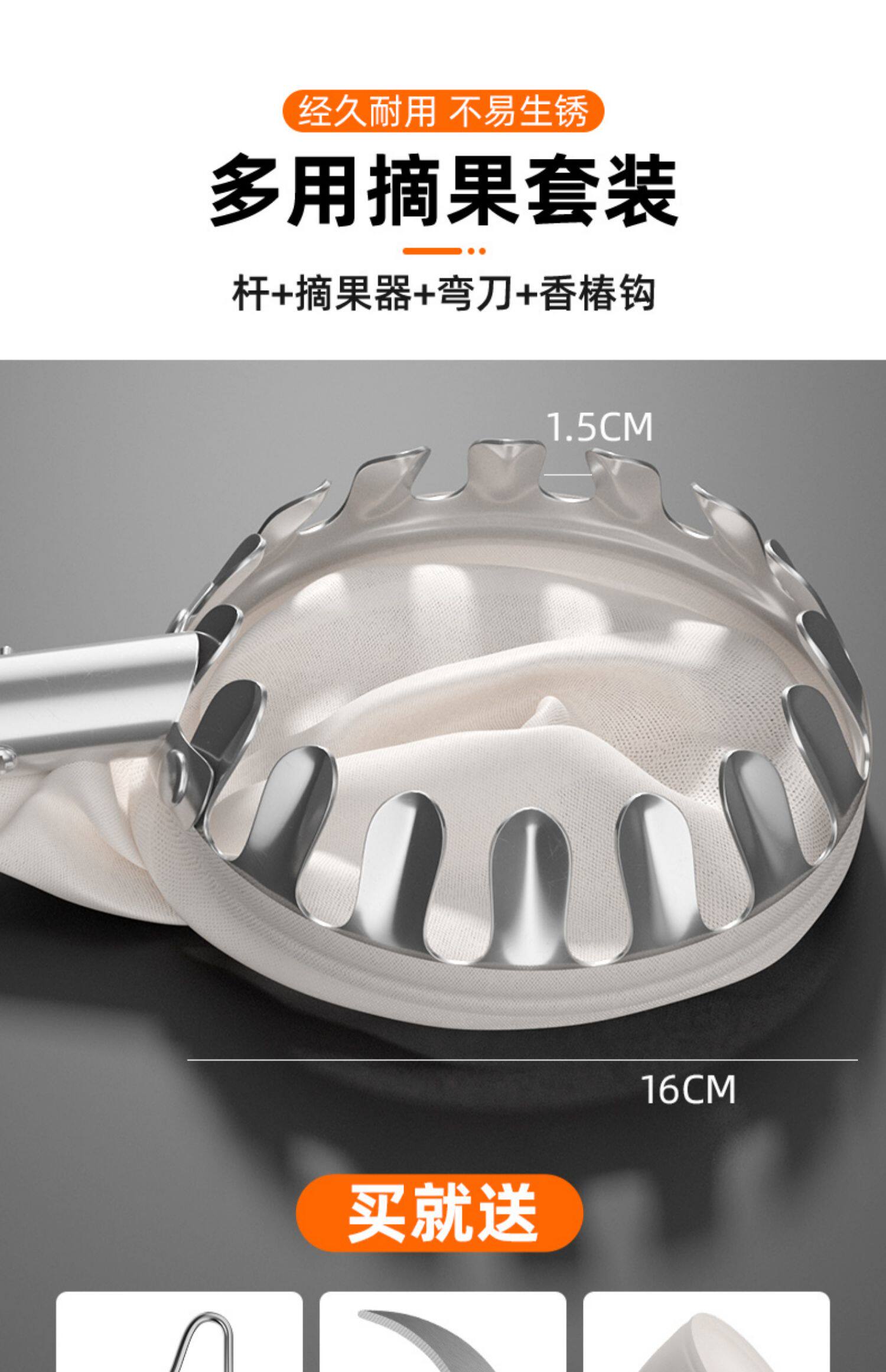 - [3 метра] Устройство сбора фруктов из нержавеющей стали [отправка ножа/крючков/тканевой сумки]