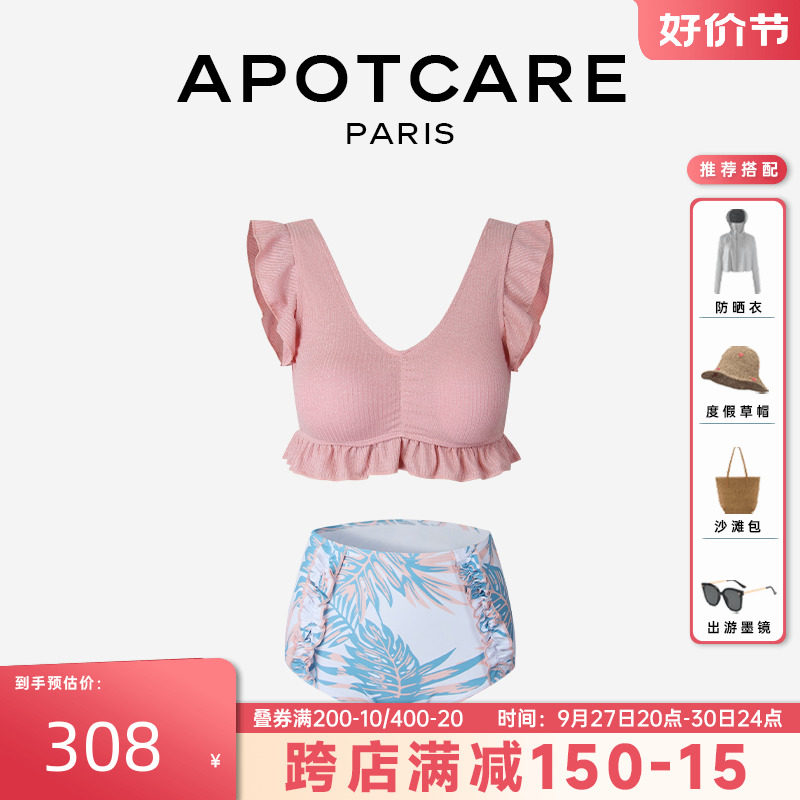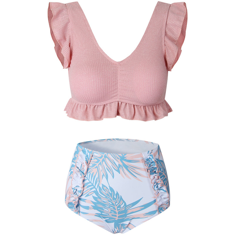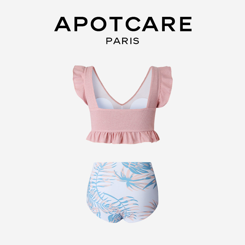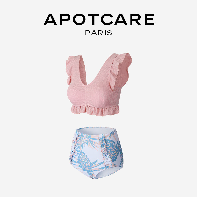 Раздельный розовый купальник, комплект для плавания, Франция, высокая талия