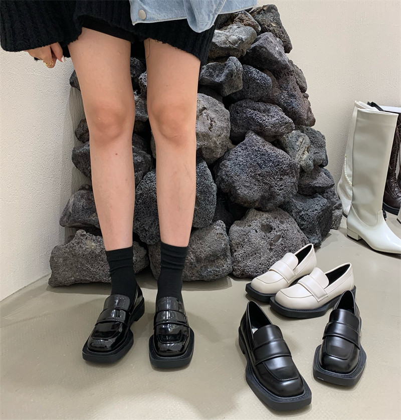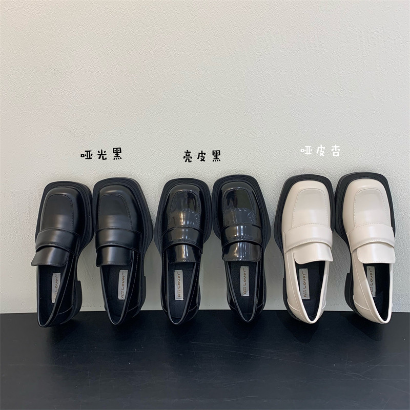 Черная весенняя обувь на платформе в английском стиле для кожаной обуви для отдыха, лоферы, в британском стиле, модель весна/осень 2023 года