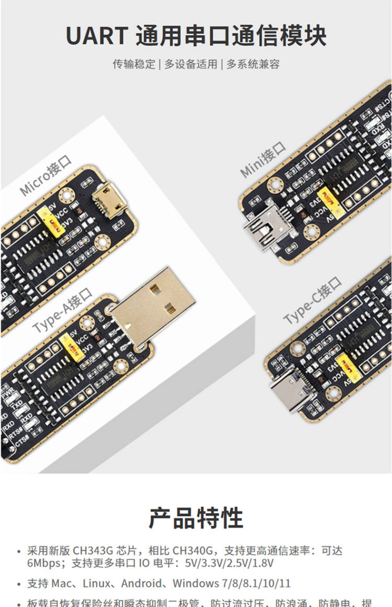 微雪 Модуль связи USB-TTL CH343G Загрузчик последовательного порта, флэш-кабель USB-URAT, мультиинтерфейсный интерфейс