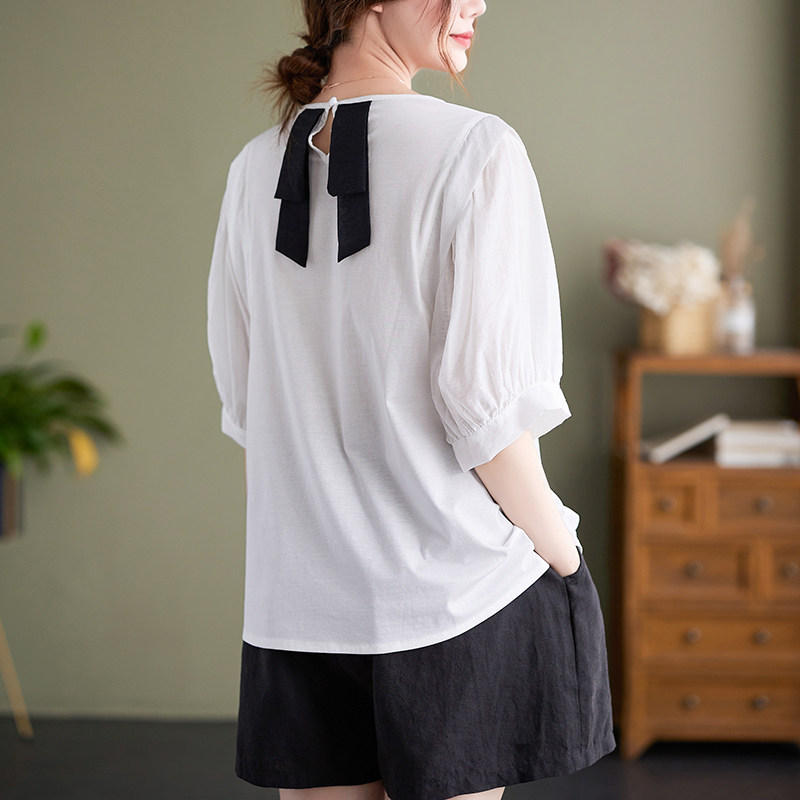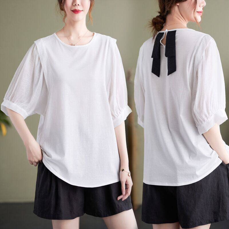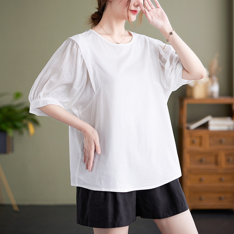 Цветная футболка для отдыха с круглым воротником, тонкая рубашка, большой размер, из хлопка и льна