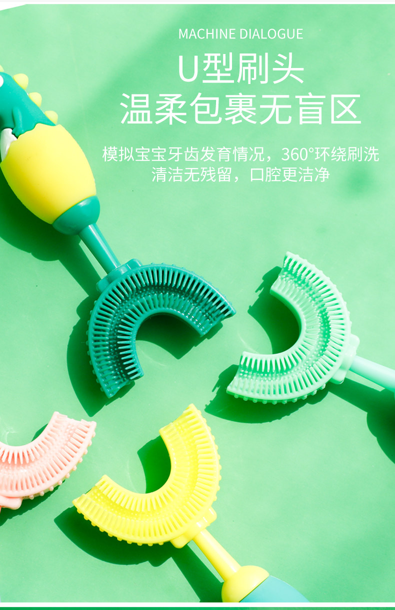Мягкая силиконовая зубная щетка для молочных зубов, милый динозавр, 1-2-3-4-6 лет