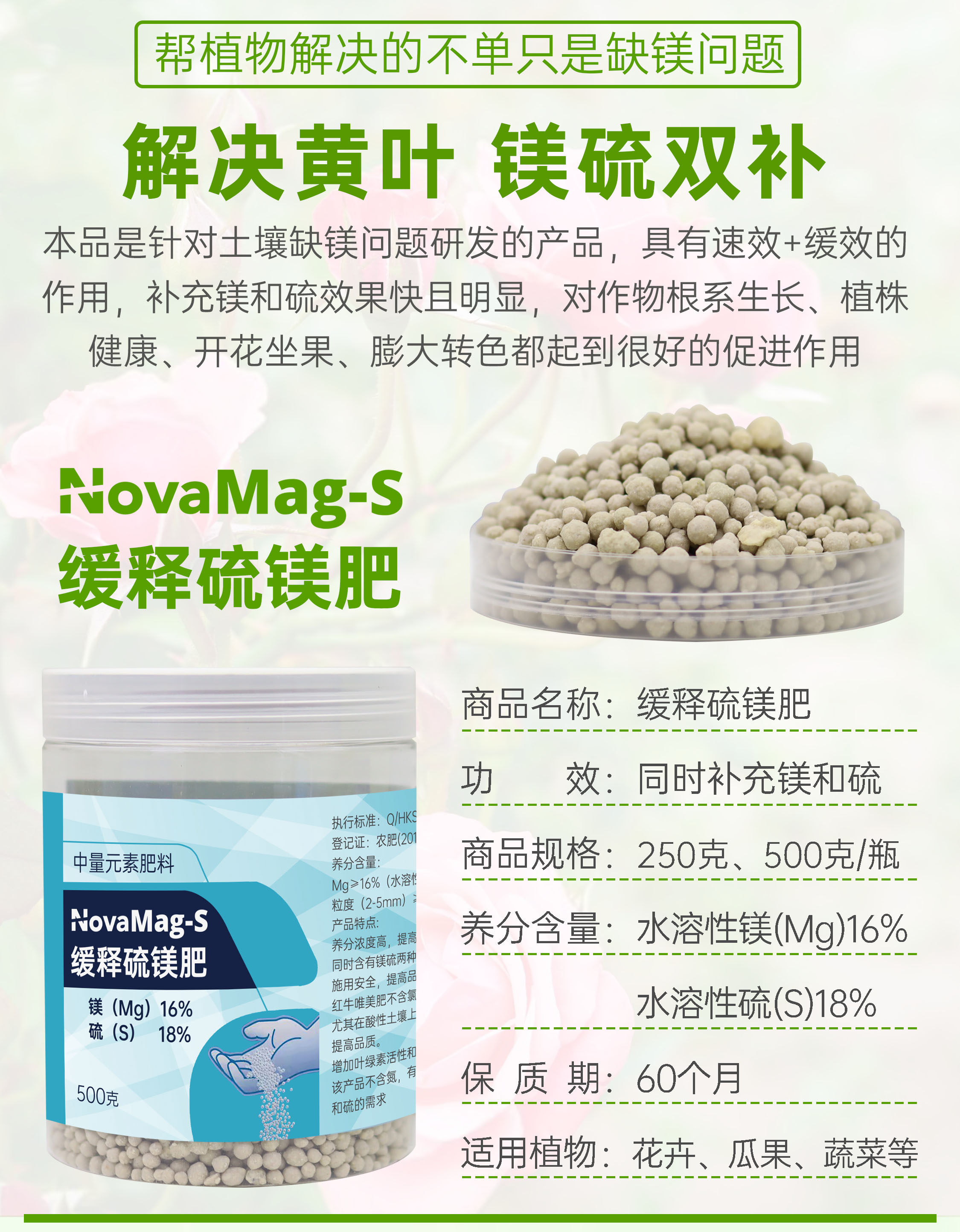 Медленнодействующее магниевое удобрение, серное удобрение, универсальные гранулы для цветов роз и зеленых растений, немецкая калийная соль, магниевая добавка, среднеэлементное удобрение против желтого листа.