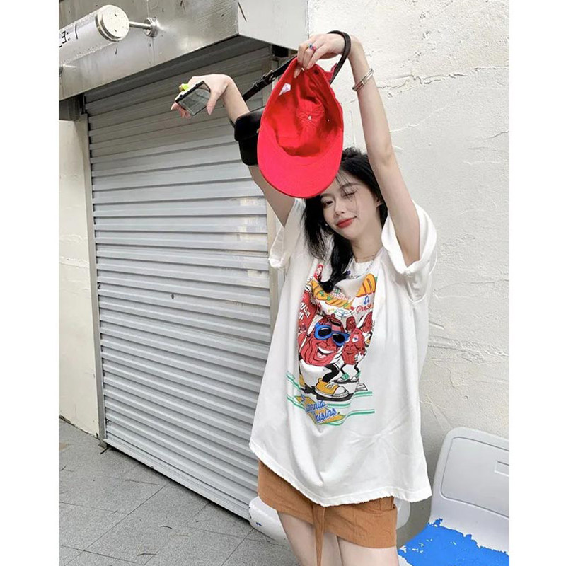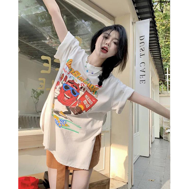 Длинная летняя футболка, средней длины, короткий рукав, оверсайз