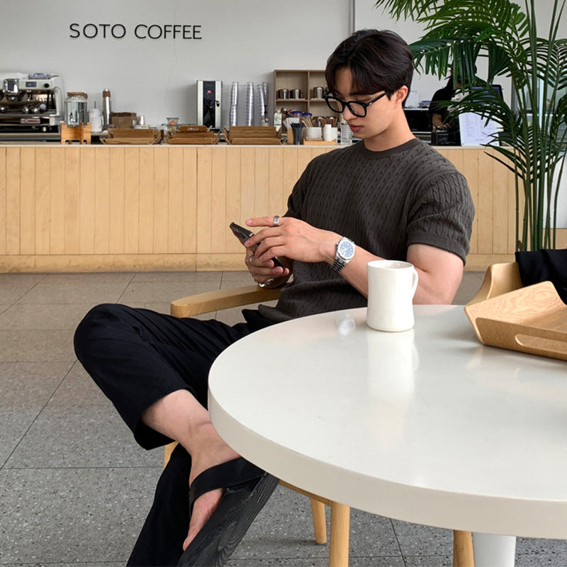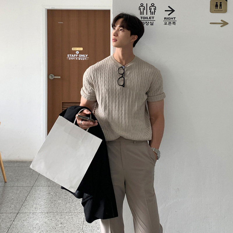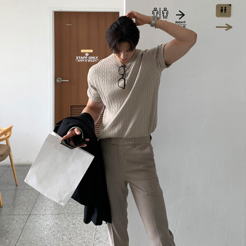 Трикотажная брендовая футболка с круглым воротником, короткий рукав, облегающий крой, 2024 года, в корейском стиле