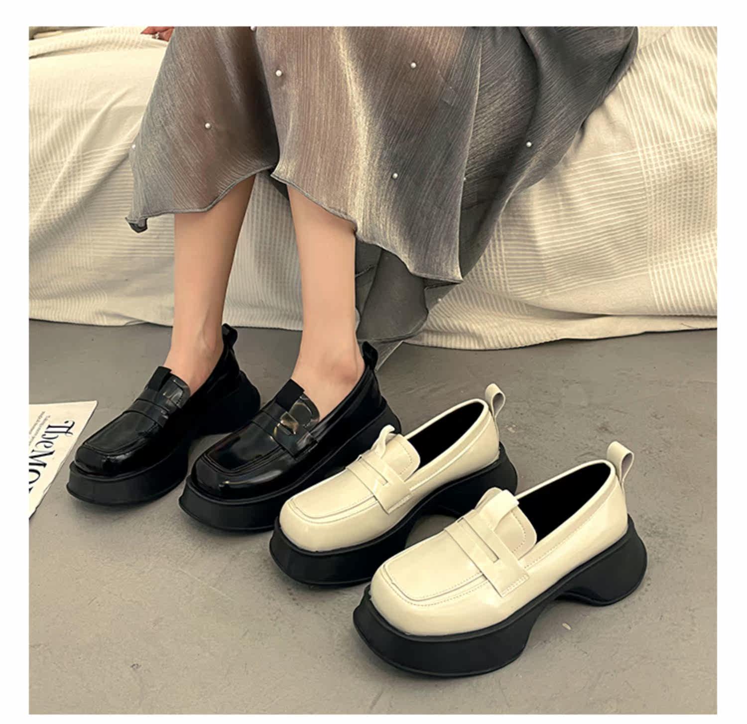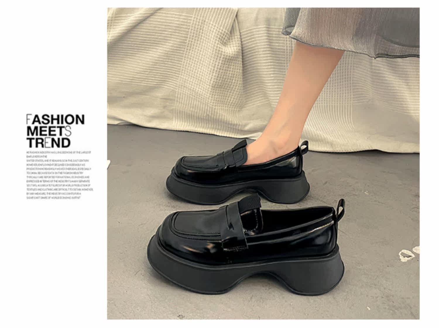 Демисезонная обувь для кожаной обуви на платформе, универсальные черные лоферы, коллекция 2022