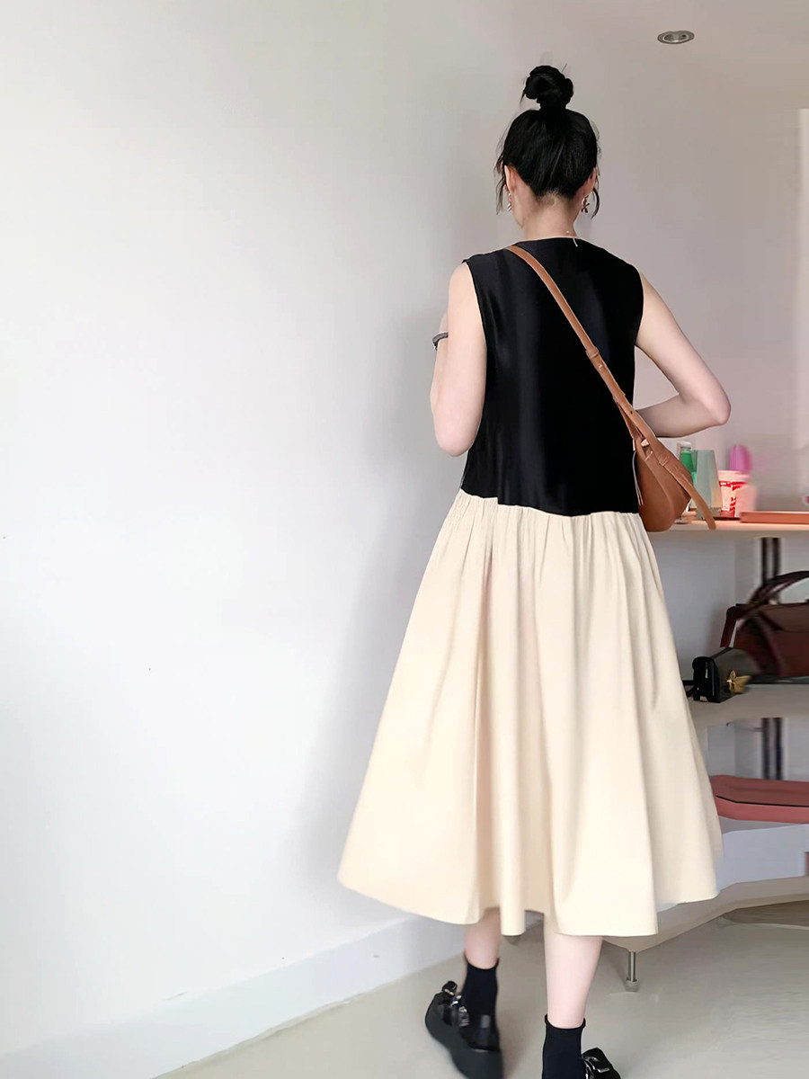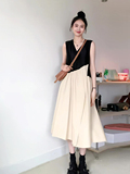 Жилет без рукавов, летнее платье, длинная юбка, V-образный вырез, изысканный стиль, французский стиль