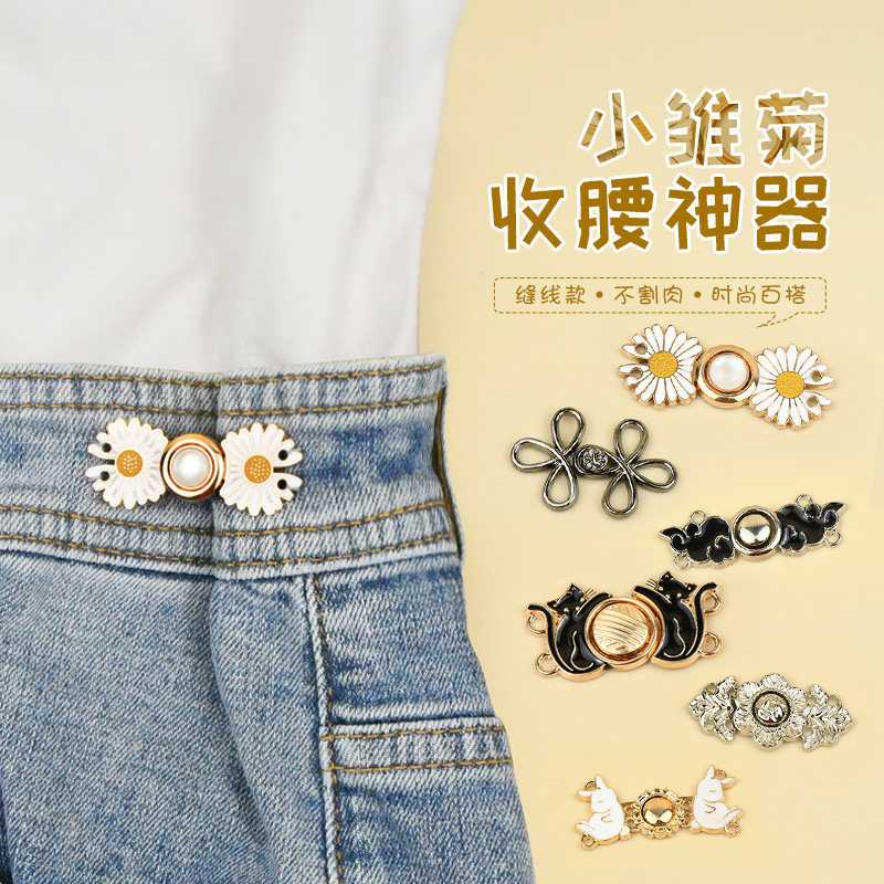 Регулируемая кнопки артефакта талии, большая модификация, небольшая разборка Скрытые джинсы, забор талии, брюки для матери, талия затянуть темную пряжку
