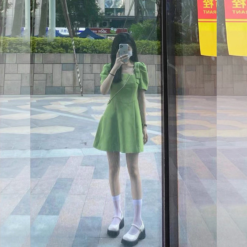 Летняя летняя одежда, зеленая кукла, платье, французский стиль, подходит для подростков, квадратный вырез
