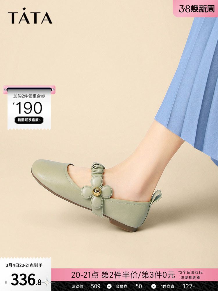 Тата, ее сладкий цветок французский футбольный туфли, женская одиночная обувь, маленькая кожаная туфли, дикая весна, новый ysu02cq2