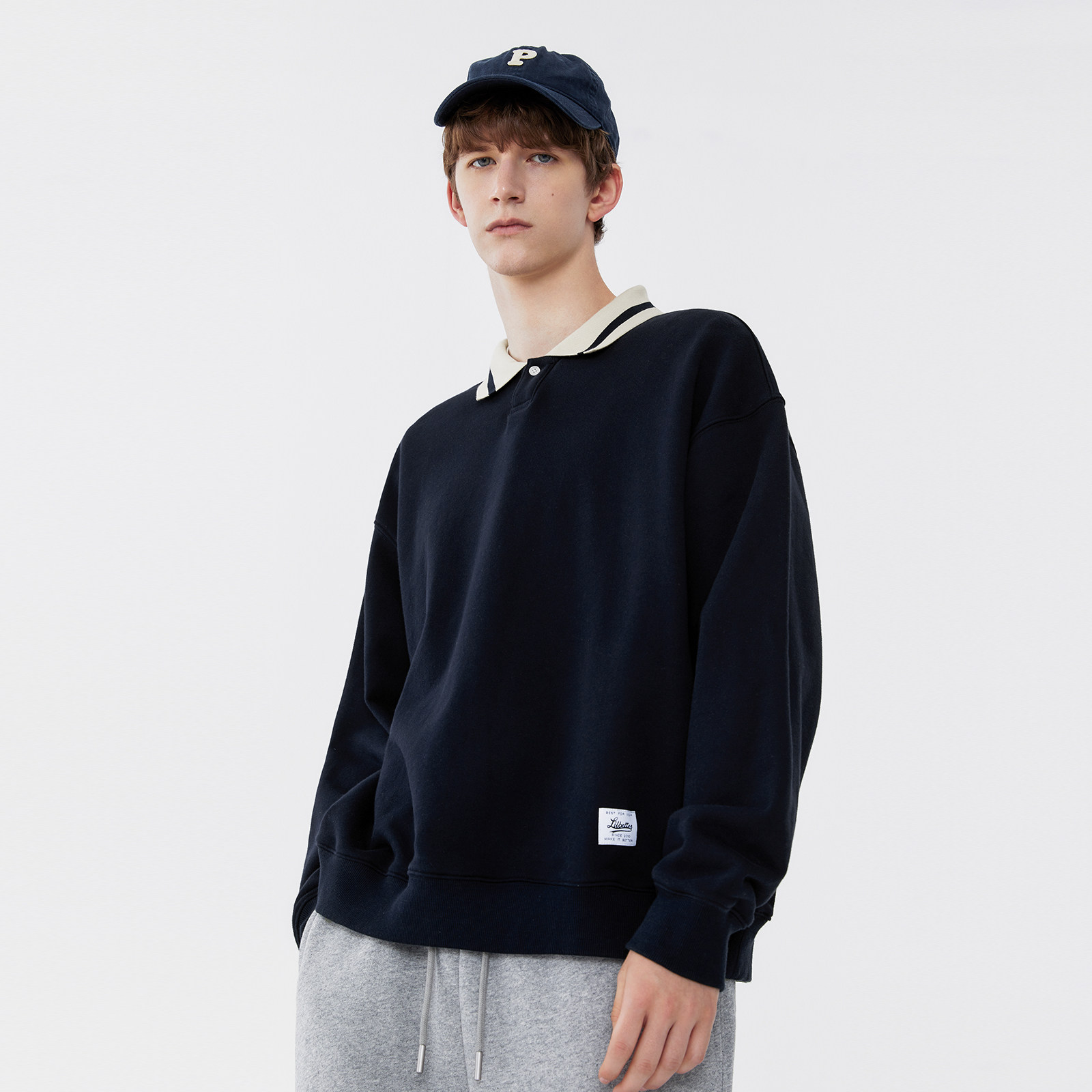 Lilbetter 380G Тяжелая толстовка мужская новая топ -лацкат пуловер американец ретро