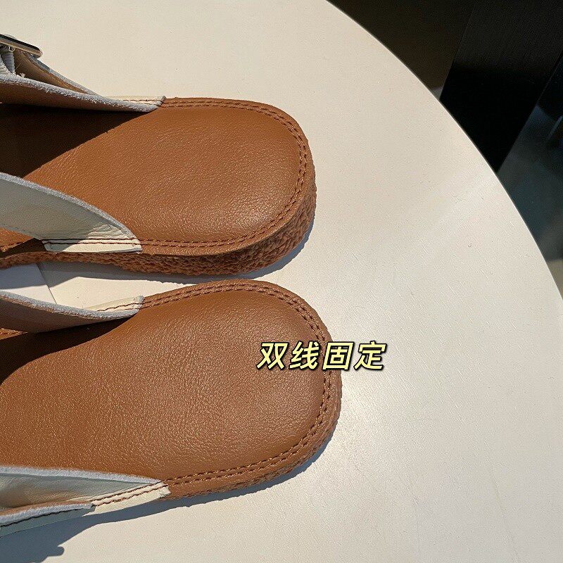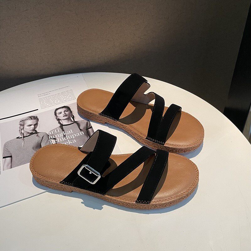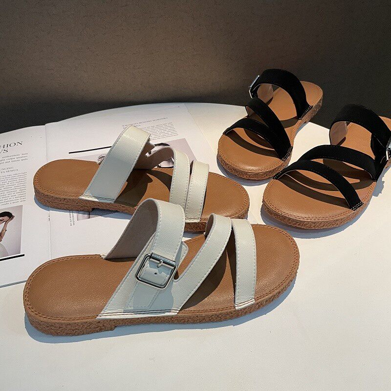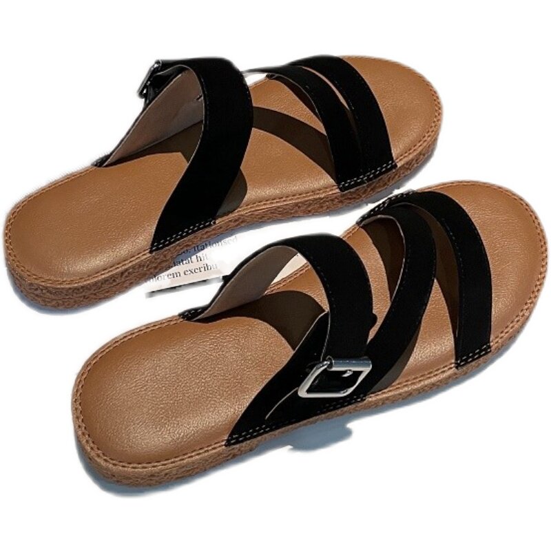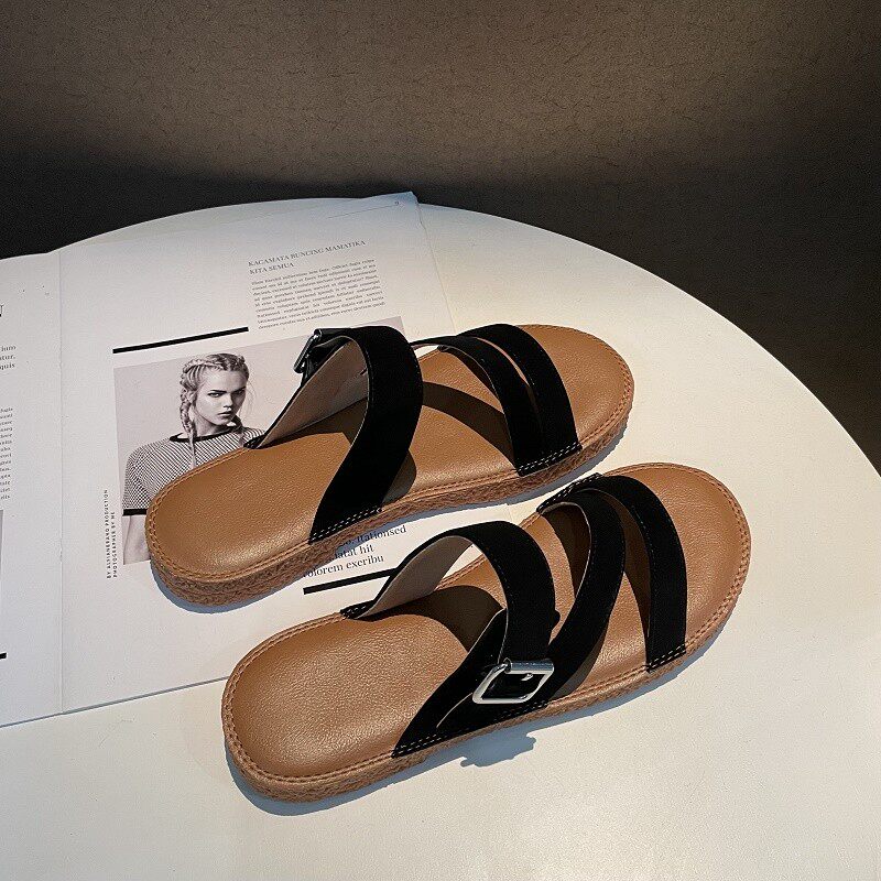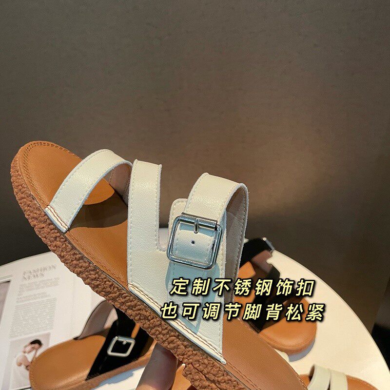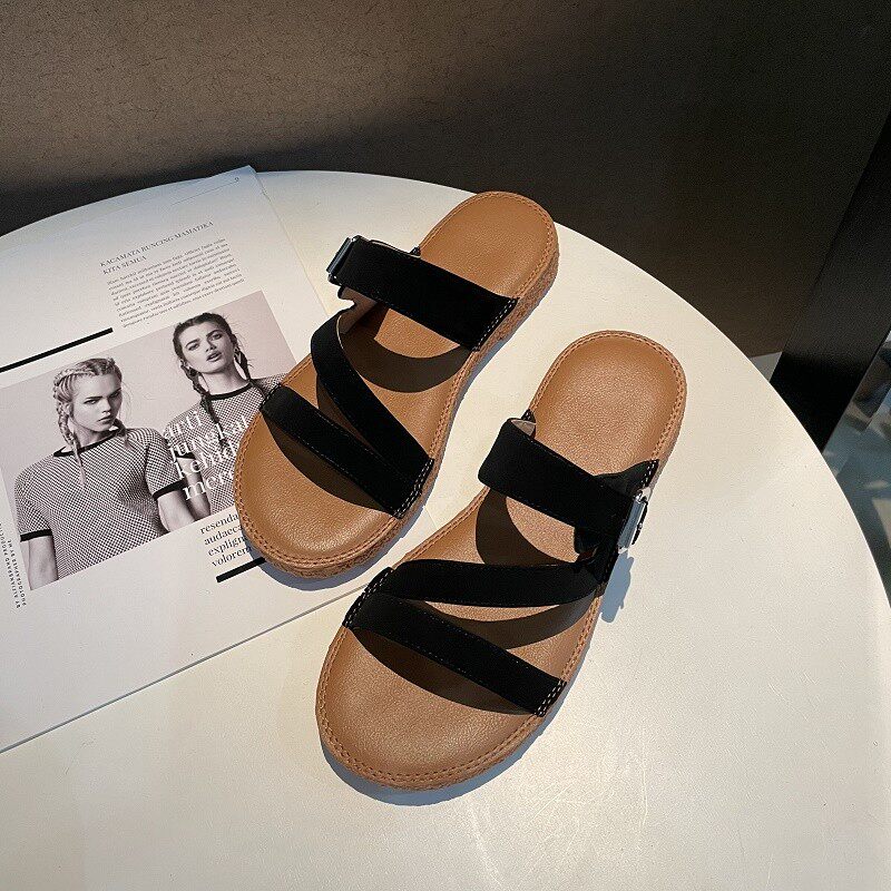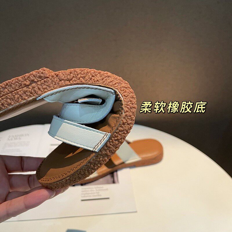 Новинка лета 2022, простой и повседневный стиль. Модные удобные женские однотонные сандалии из натуральной кожи с плоской подошвой, мягкие сандалии для верхней одежды.