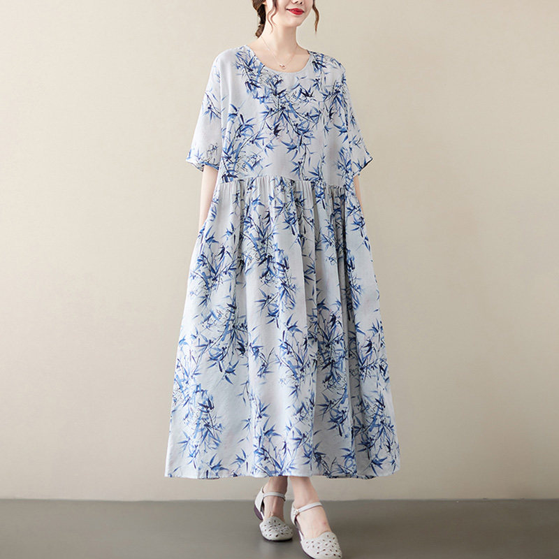 Тонкое модное платье, длинная юбка с круглым воротником, большой размер, свободный крой, городской стиль, с рукавом