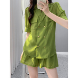 | Цвет: | Трава -зеленый шорт костюм, Smog Blue Shorts костюм |