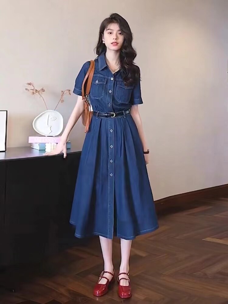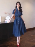 Небольшая дизайнерская длинная юбка, ретро джинсовое платье, коллекция 2023, французский стиль