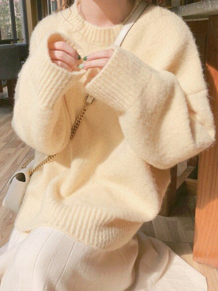 Демисезонный желтый трикотажный свитер с круглым воротником, оверсайз, французский стиль